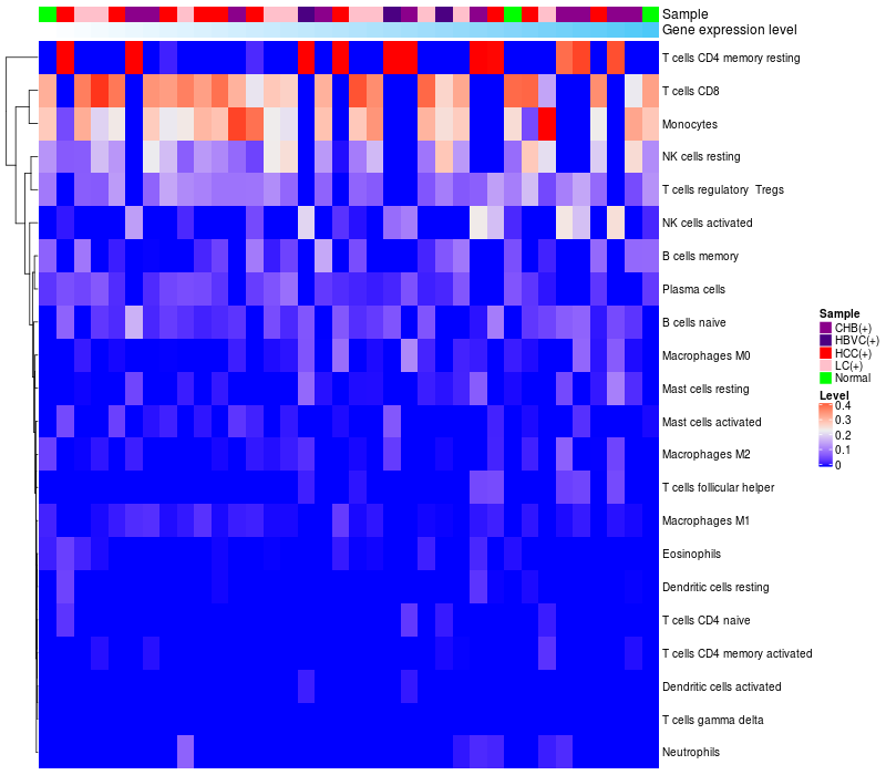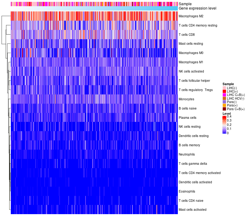 Liver hepatocellular carcinoma HCV (HBV+)(86), Liver hepatocellular carcinoma HCV (HBV-)(19), Liver hepatocellular carcinoma (HBV+)(209), Liver hepatocellular carcinoma (HBV+)(60), Paracancerous HCV (HBV+)(4), Paracancerous (HBV-)(28), Paracancerous (HBV+)(18) |