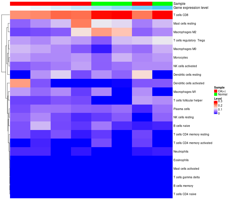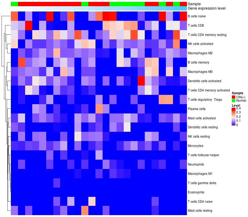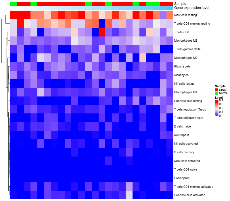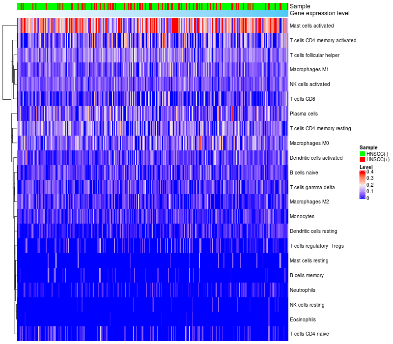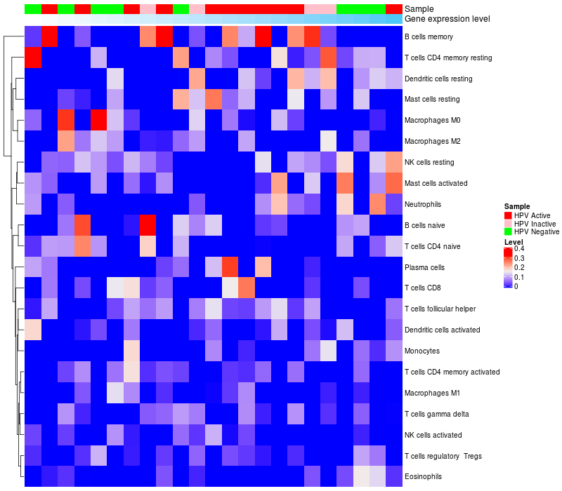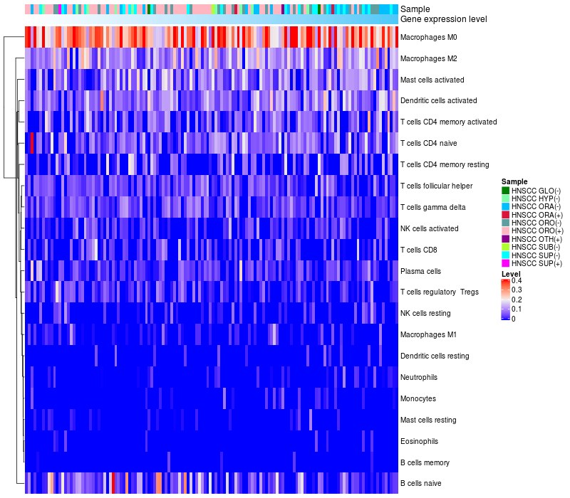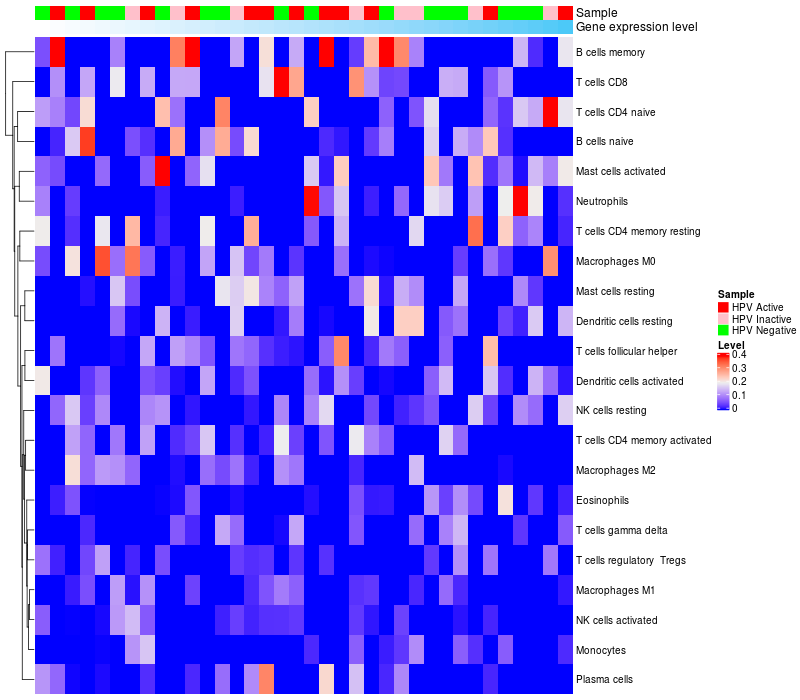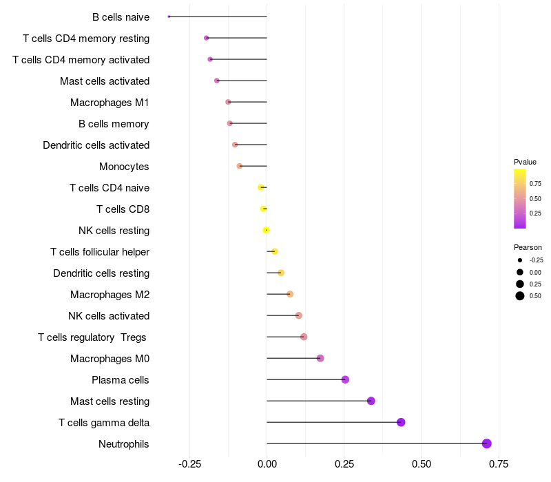 Lollipop of TOLLIP expression and immune infiltrating cell level correlation result in HPV+ samples
