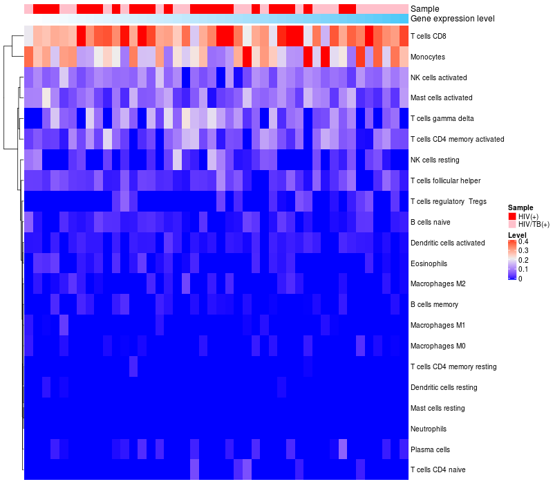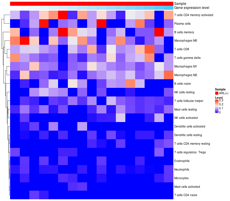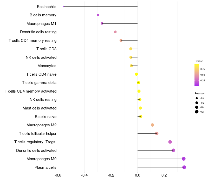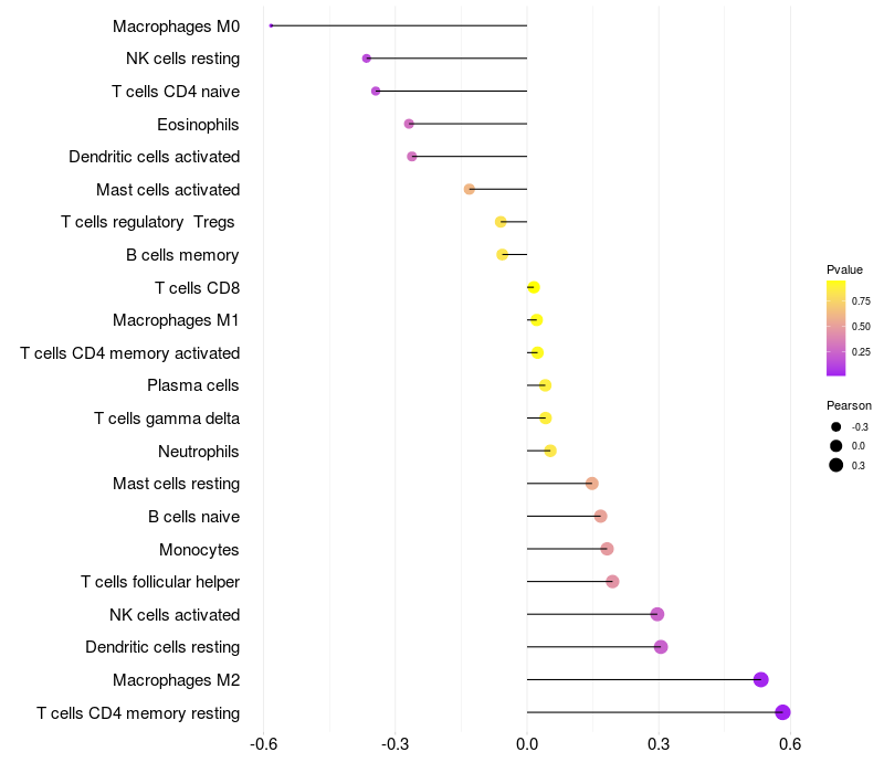 Relationship between gene expression and immune infiltrating cell level