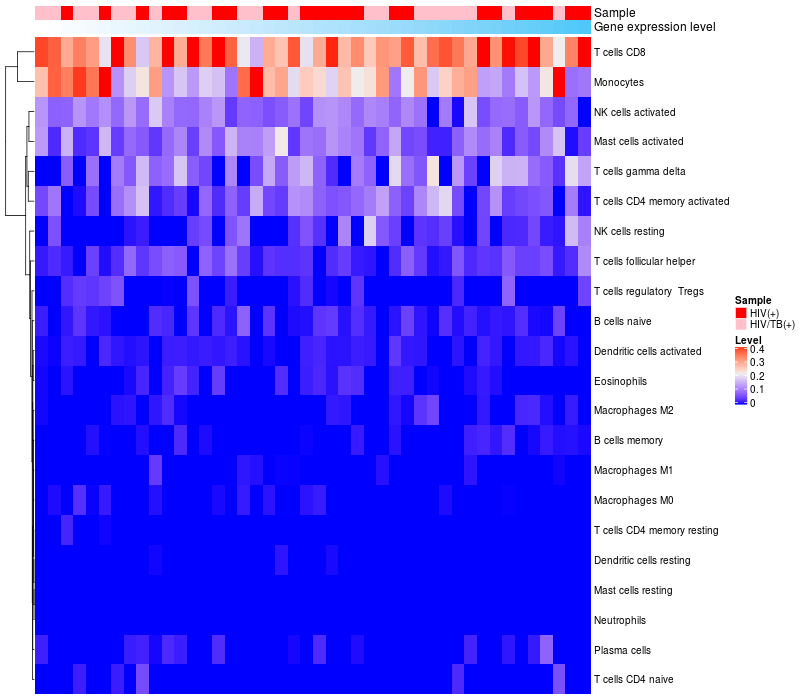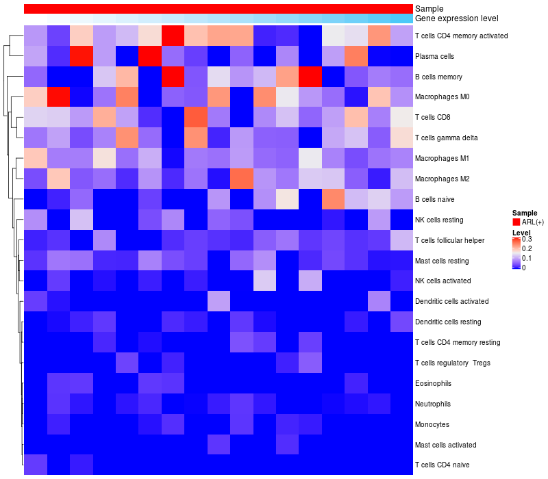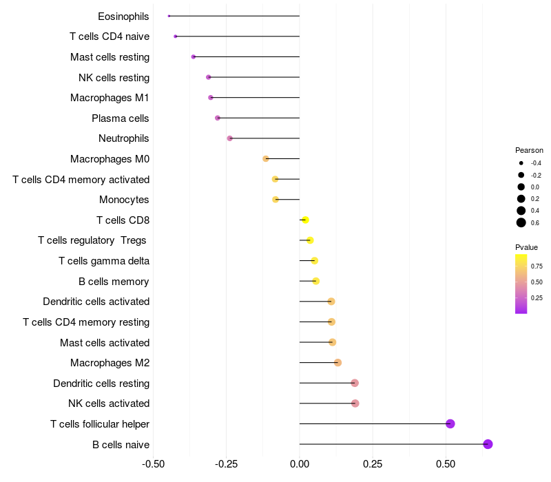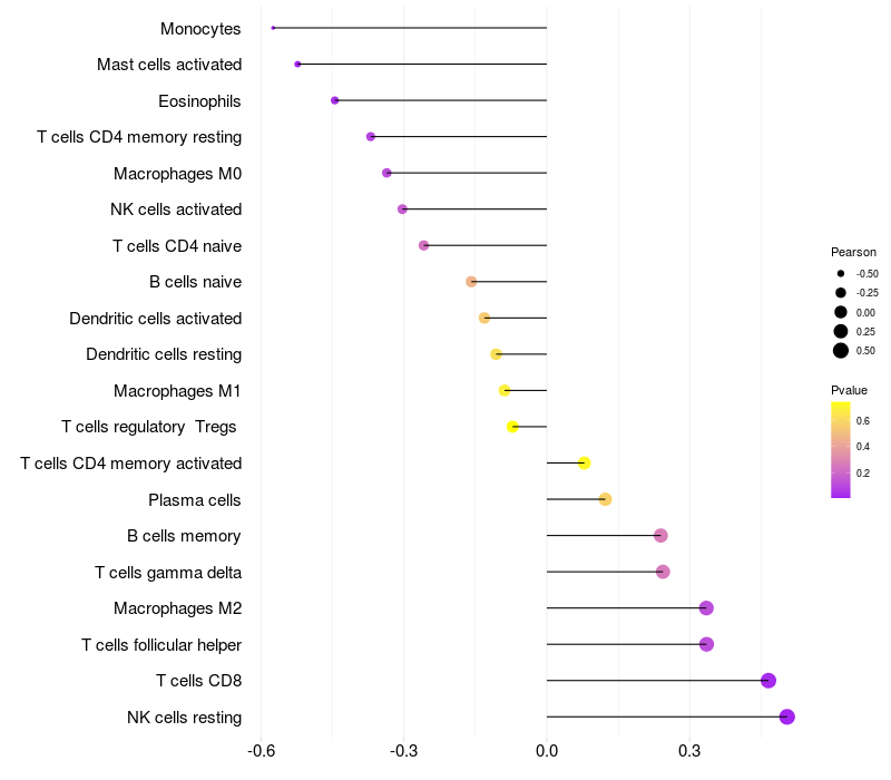 Relationship between gene expression and immune infiltrating cell level
