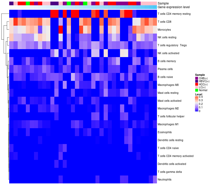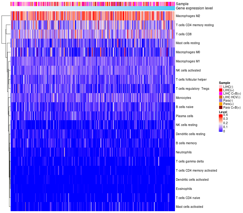 Liver hepatocellular carcinoma HCV (HBV+)(86), Liver hepatocellular carcinoma HCV (HBV-)(19), Liver hepatocellular carcinoma (HBV+)(209), Liver hepatocellular carcinoma (HBV+)(60), Paracancerous HCV (HBV+)(4), Paracancerous (HBV-)(28), Paracancerous (HBV+)(18) |