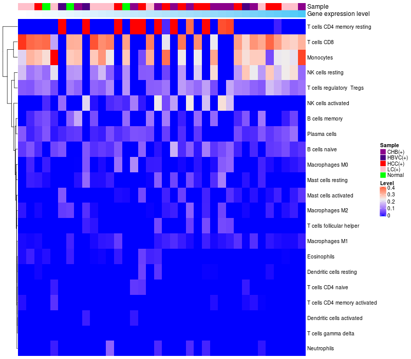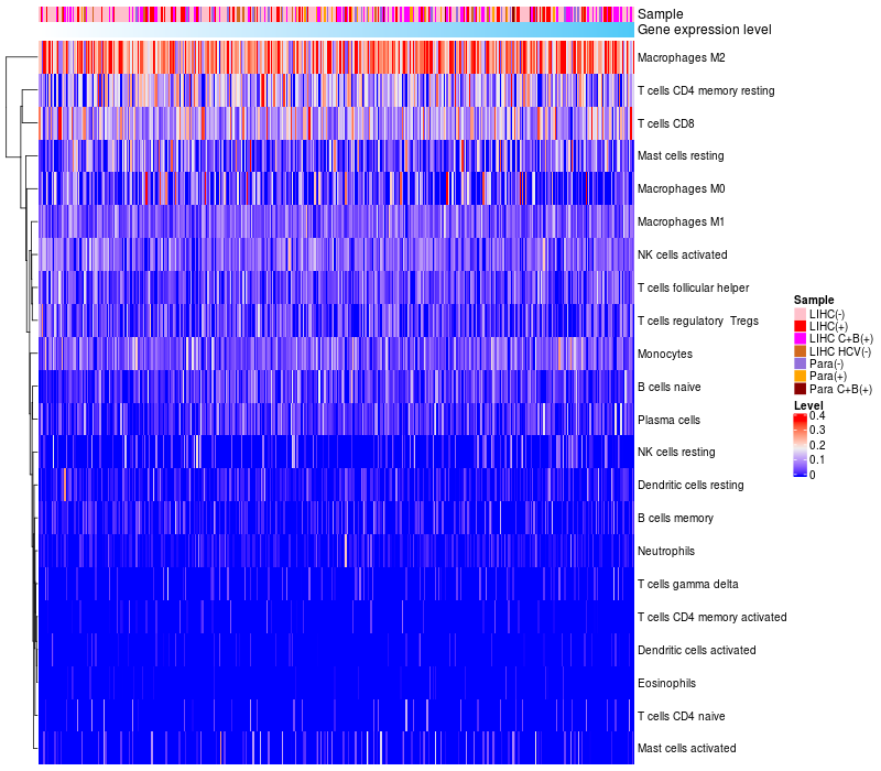 Liver hepatocellular carcinoma HCV (HBV+)(86), Liver hepatocellular carcinoma HCV (HBV-)(19), Liver hepatocellular carcinoma (HBV+)(209), Liver hepatocellular carcinoma (HBV+)(60), Paracancerous HCV (HBV+)(4), Paracancerous (HBV-)(28), Paracancerous (HBV+)(18) |