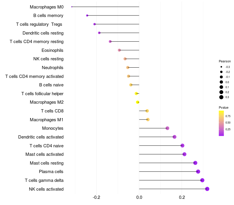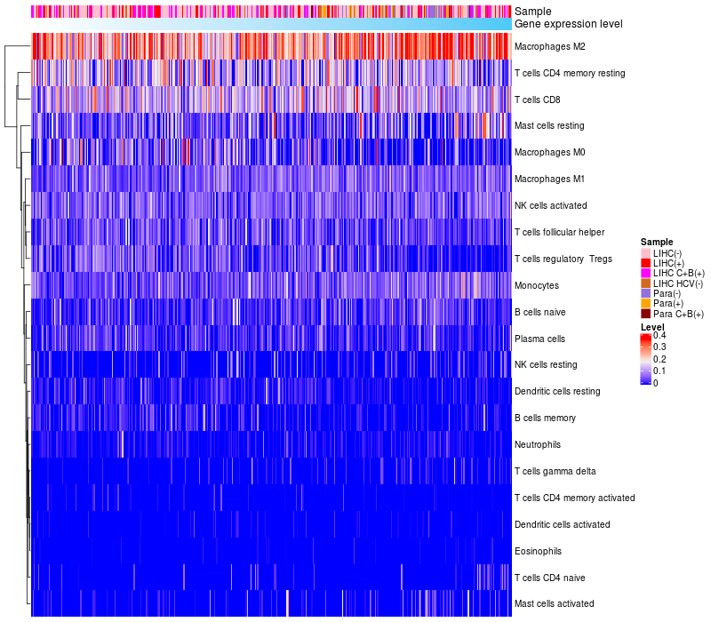 Relationship between gene expression and immune infiltrating cell level
