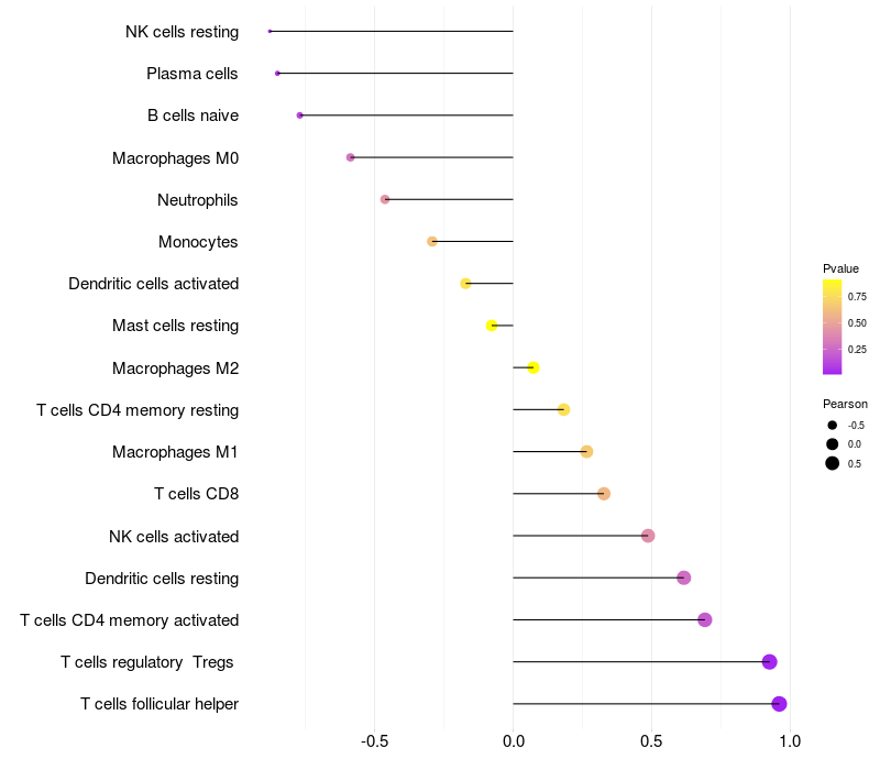 Relationship between gene expression and immune infiltrating cell level
