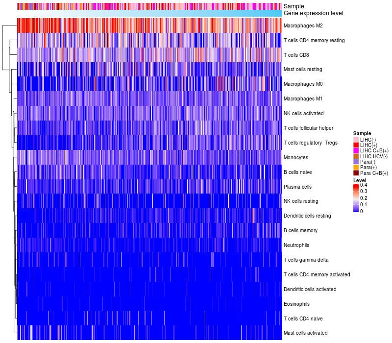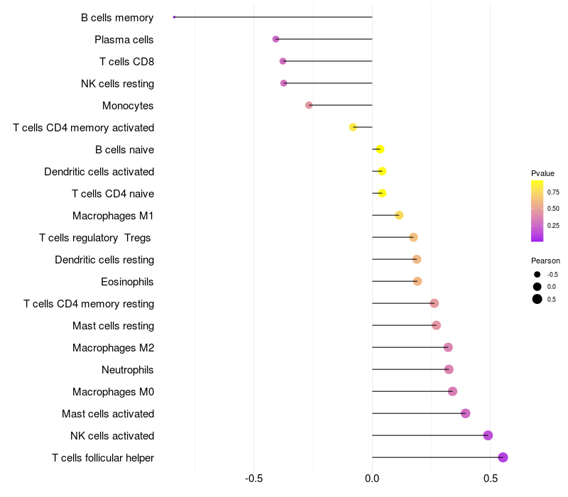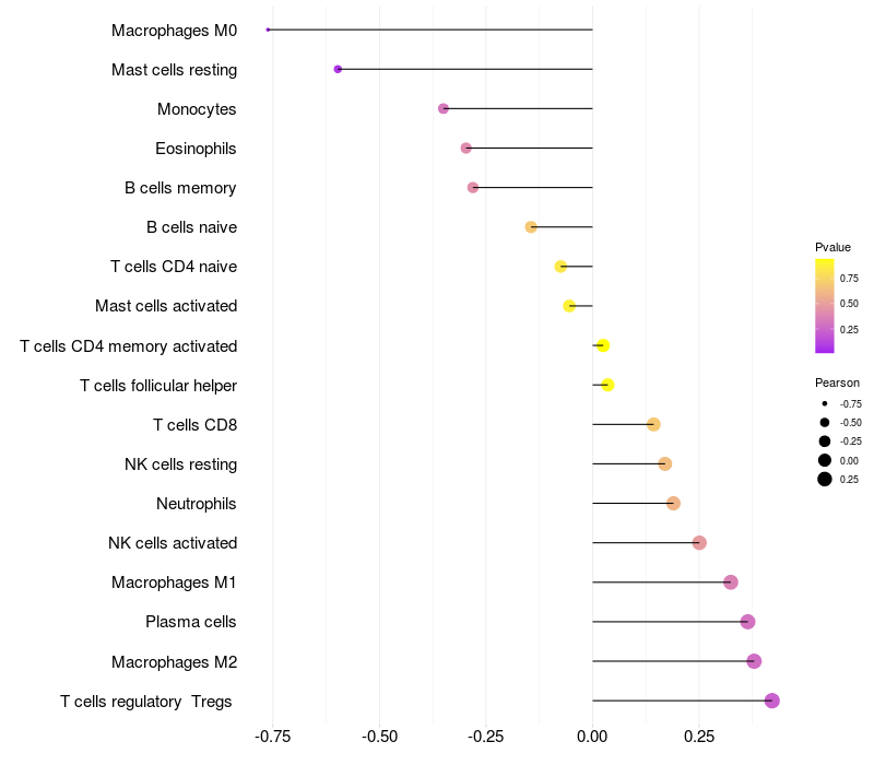 Relationship between gene expression and immune infiltrating cell level