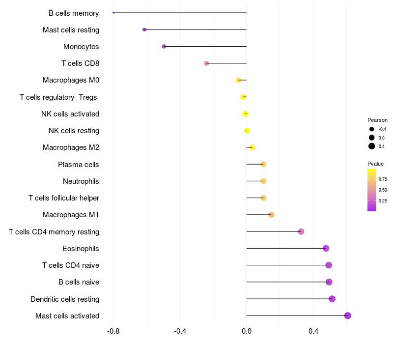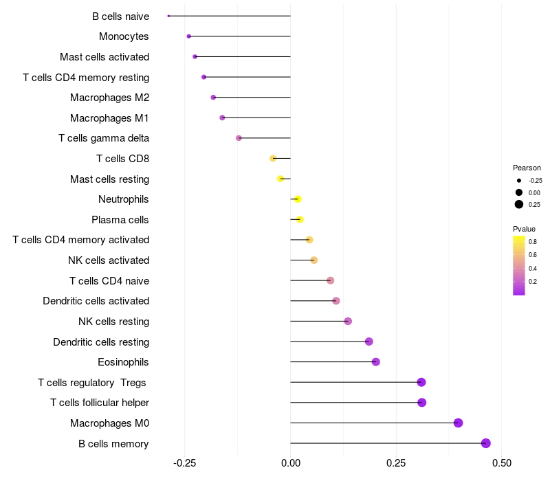 Lollipop of TRAF2 expression and immune infiltrating cell level correlation result in HBV+ Liver cirrhosis samples