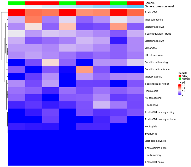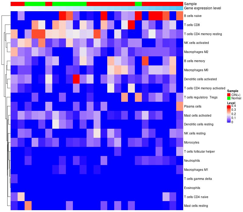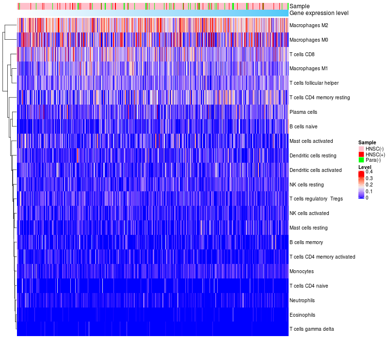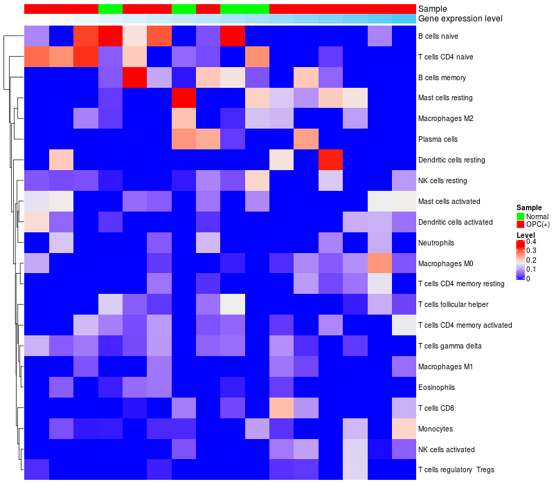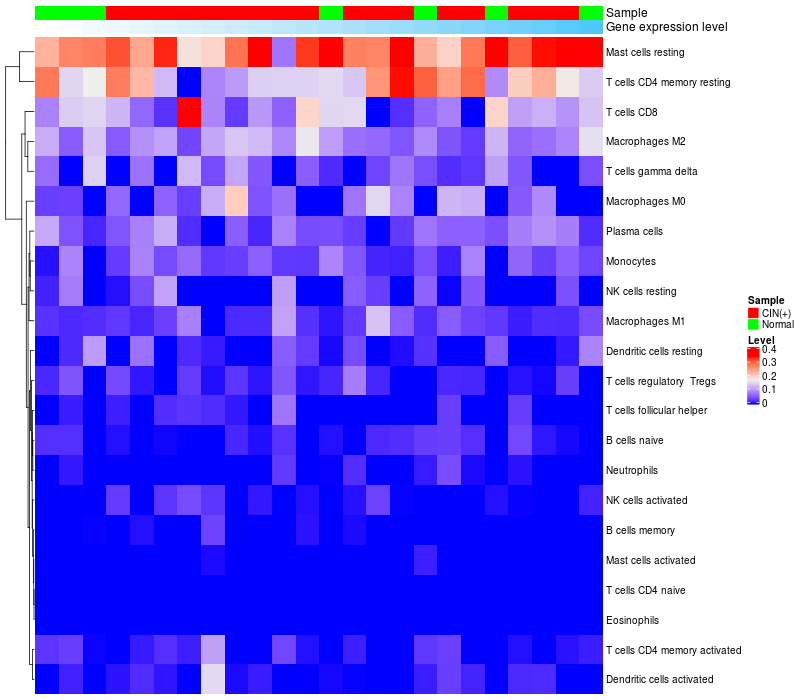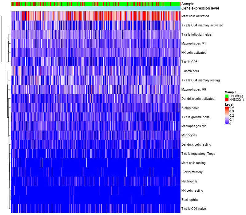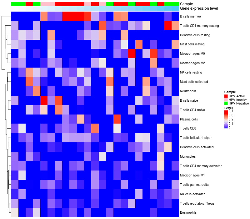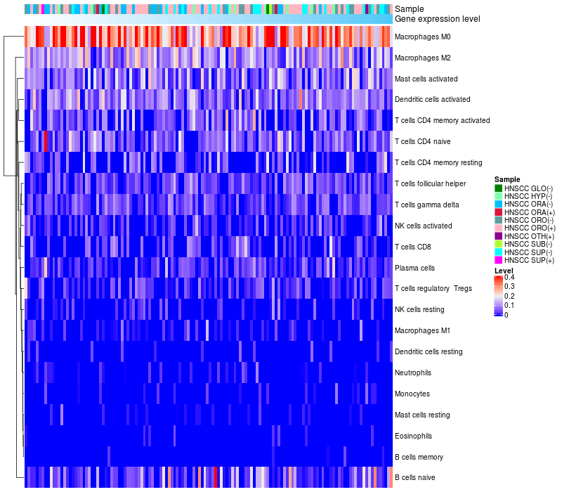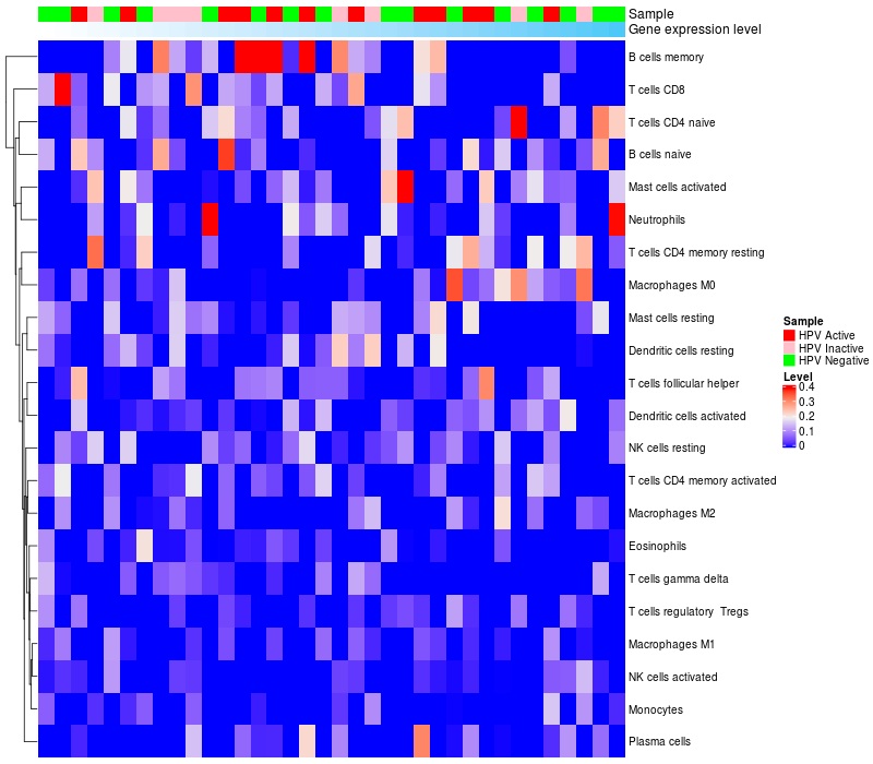 Lollipop of TRAF3IP1 expression and immune infiltrating cell level correlation result in HPV+ samples