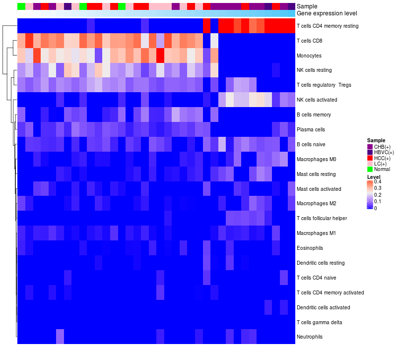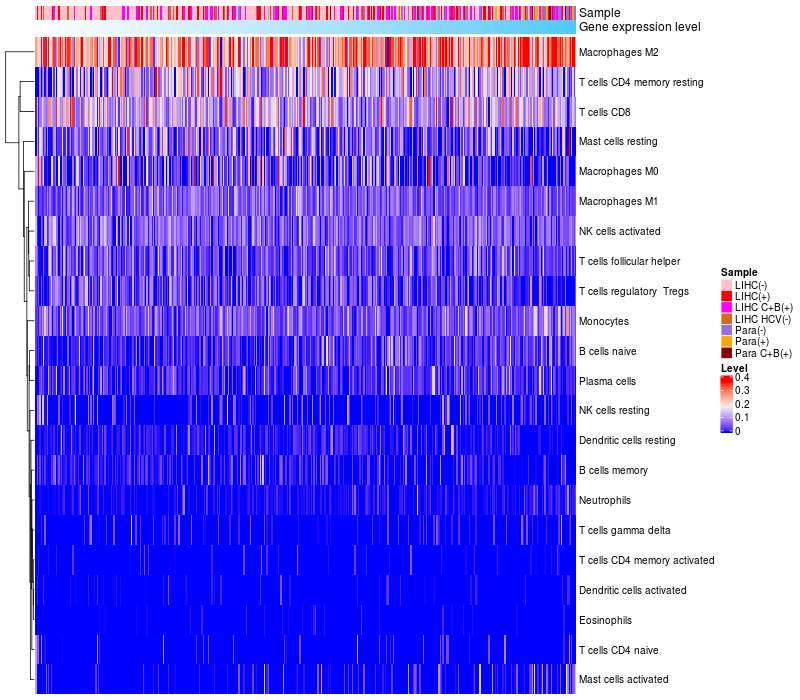 Liver hepatocellular carcinoma HCV (HBV+)(86), Liver hepatocellular carcinoma HCV (HBV-)(19), Liver hepatocellular carcinoma (HBV+)(209), Liver hepatocellular carcinoma (HBV+)(60), Paracancerous HCV (HBV+)(4), Paracancerous (HBV-)(28), Paracancerous (HBV+)(18) |