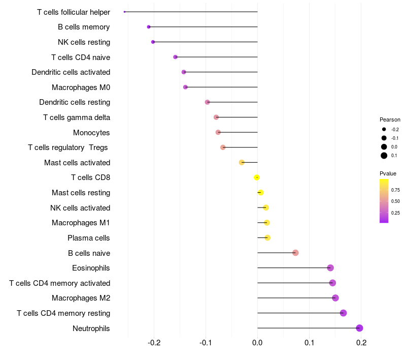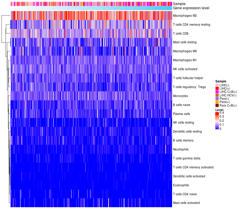 Relationship between gene expression and immune infiltrating cell level