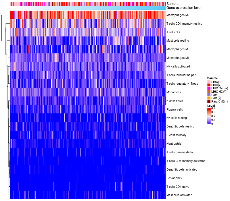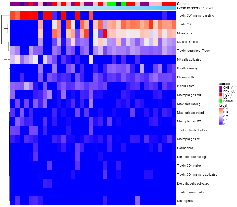 Relationship between gene expression and immune infiltrating cell level