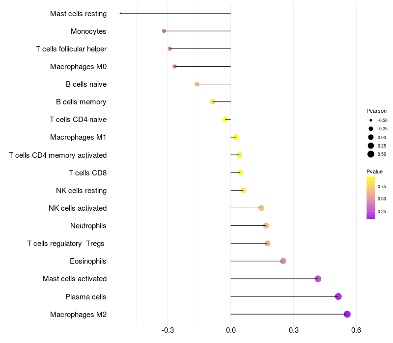Lollipop of TRDN expression and immune infiltrating cell level correlation result in HBV+ Liver cirrhosis samples
