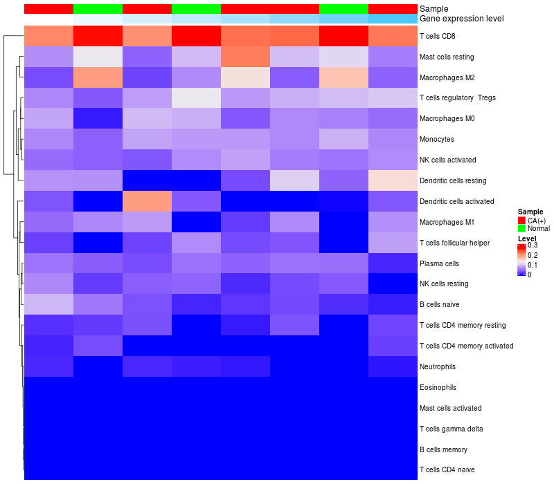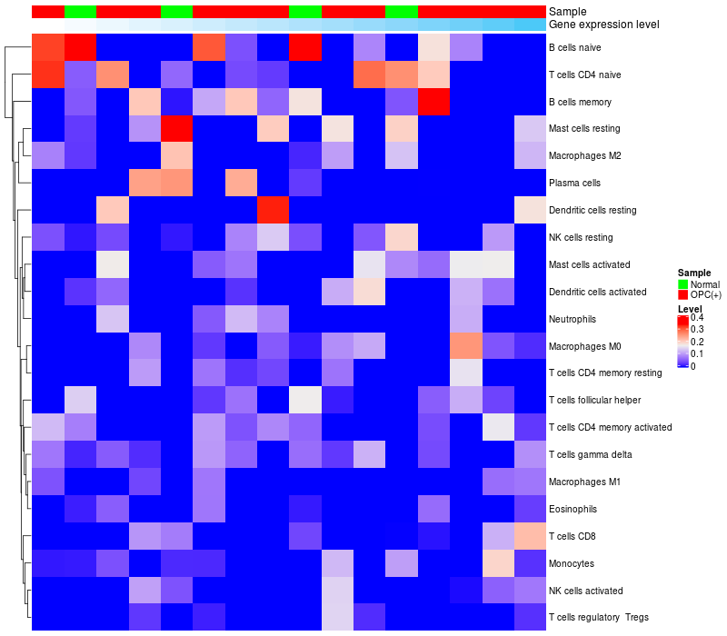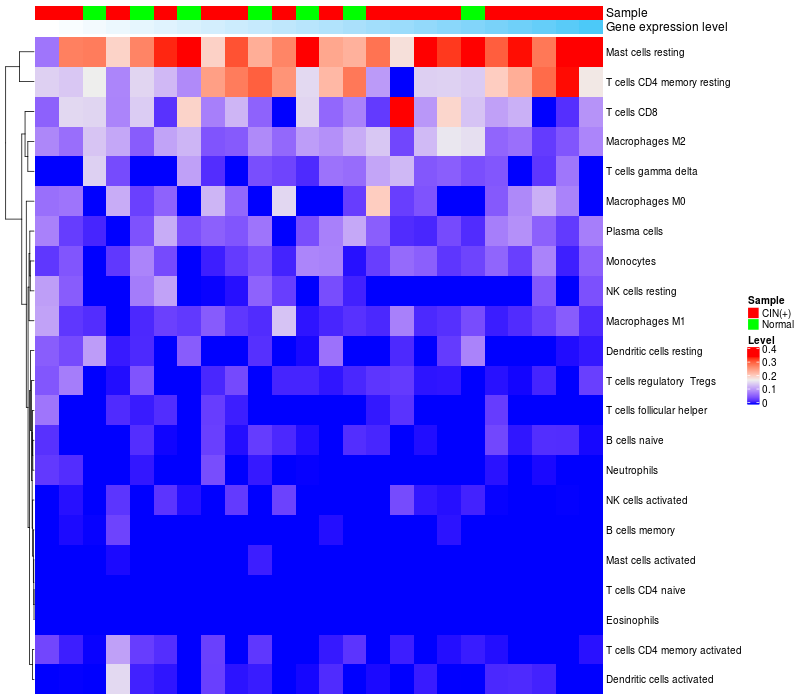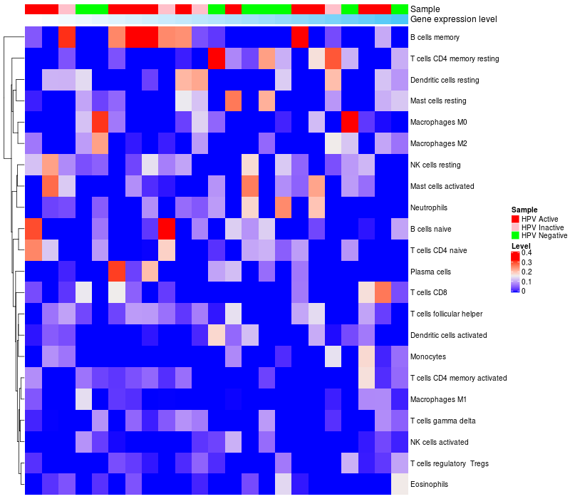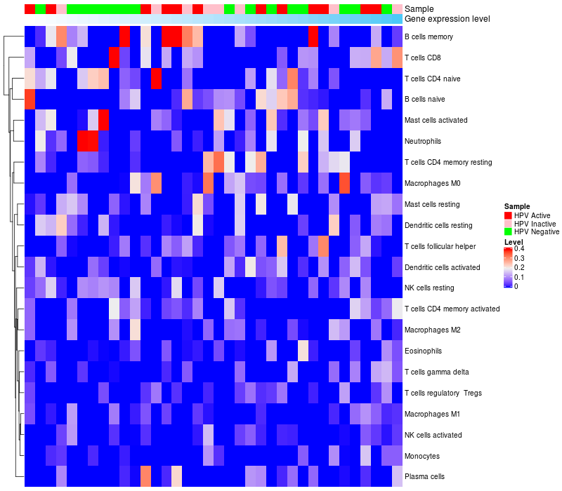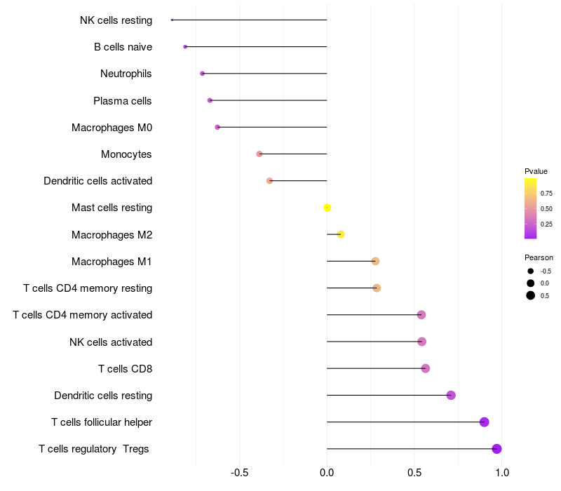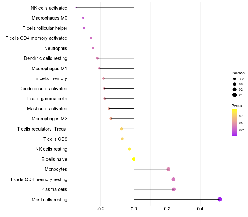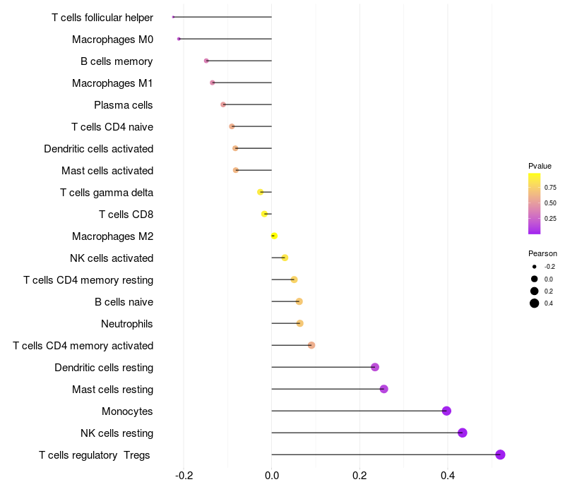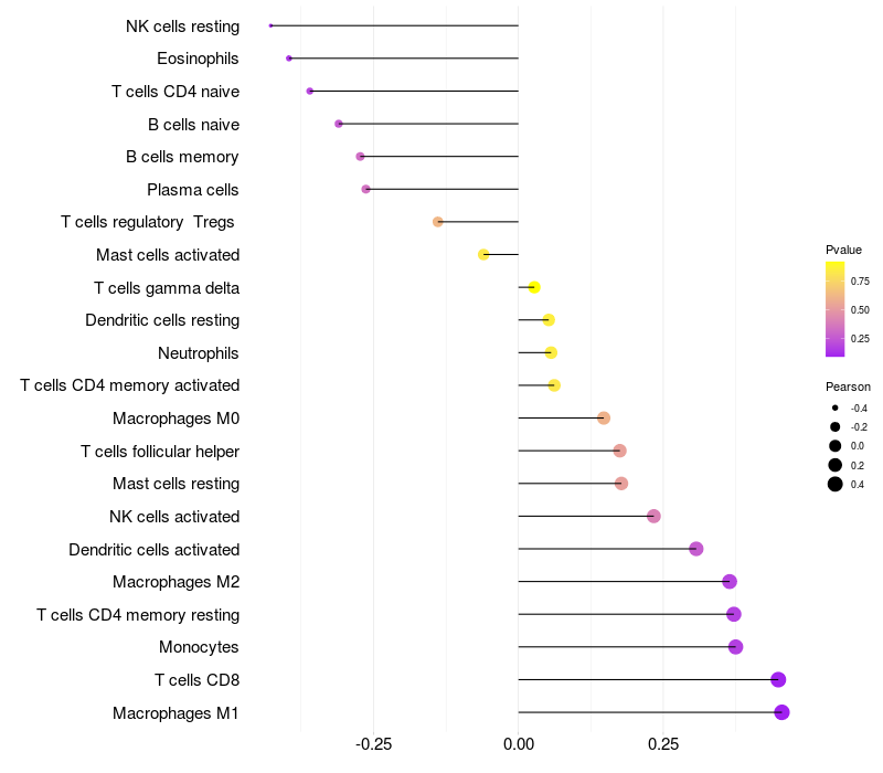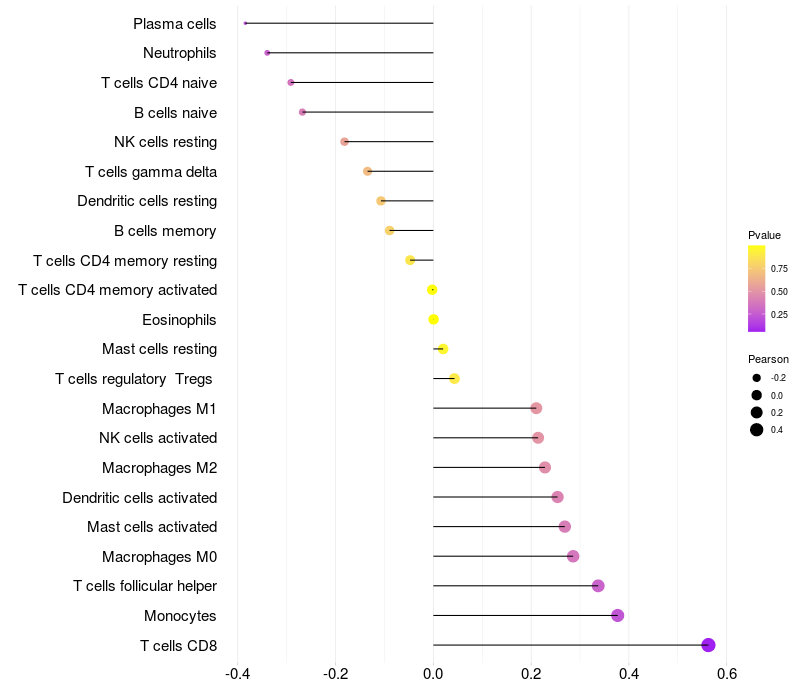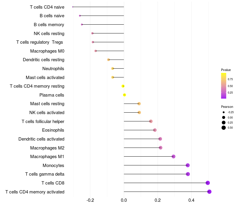 Lollipop of TRH expression and immune infiltrating cell level correlation result in HPV+ samples