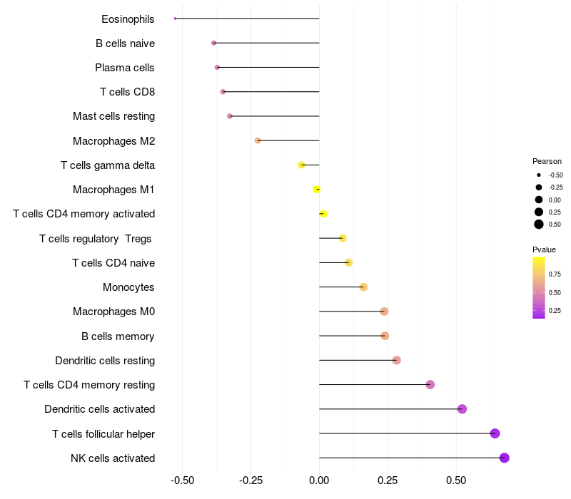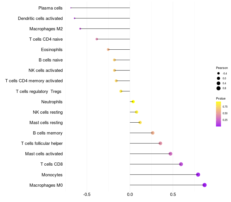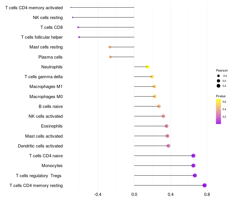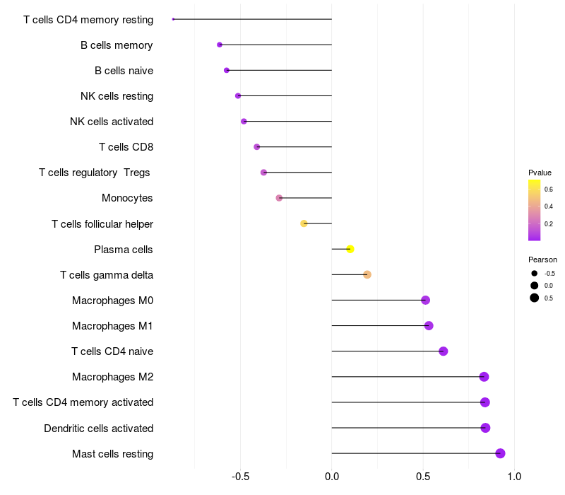 Lollipop of TRIM16L expression and immune infiltrating cell level correlation result in EBV+ samples