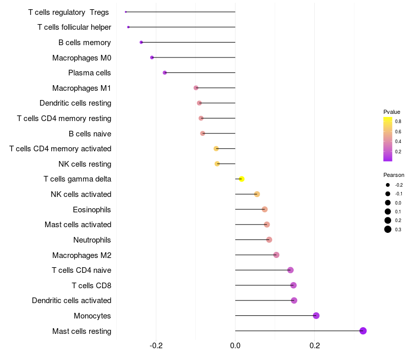 Relationship between gene expression and immune infiltrating cell level
