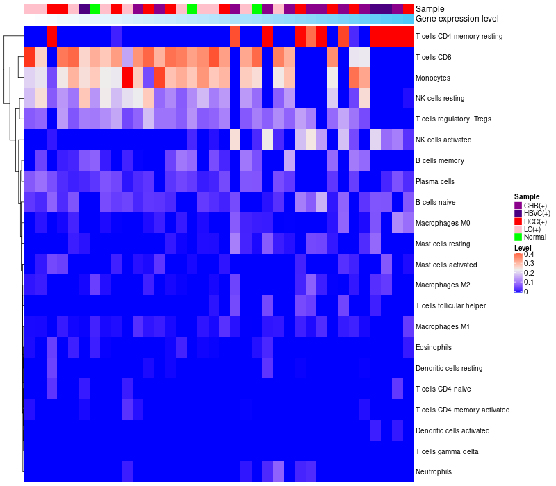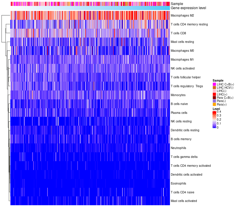 Liver hepatocellular carcinoma HCV (HBV+)(86), Liver hepatocellular carcinoma HCV (HBV-)(19), Liver hepatocellular carcinoma (HBV+)(209), Liver hepatocellular carcinoma (HBV+)(60), Paracancerous HCV (HBV+)(4), Paracancerous (HBV-)(28), Paracancerous (HBV+)(18) |
