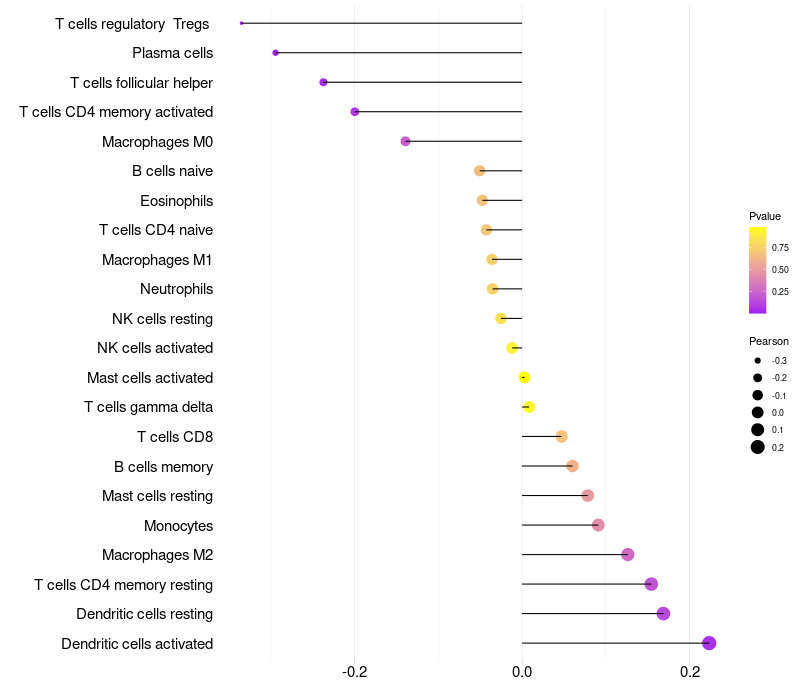 Lollipop of TRIM23 expression and immune infiltrating cell level correlation result in HBV+ samples