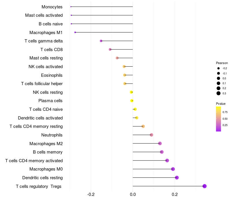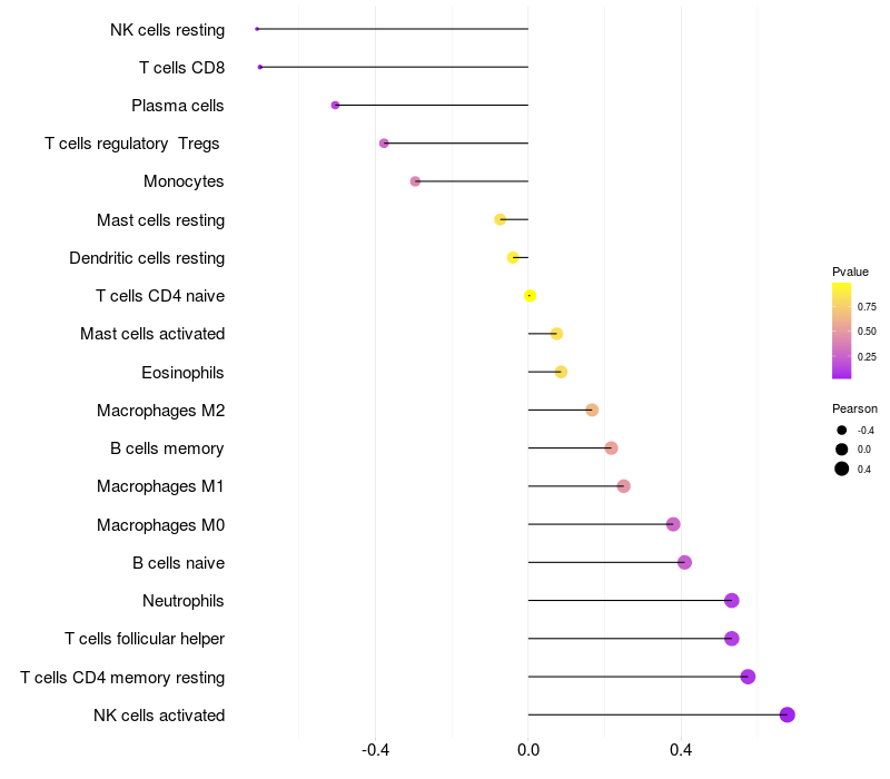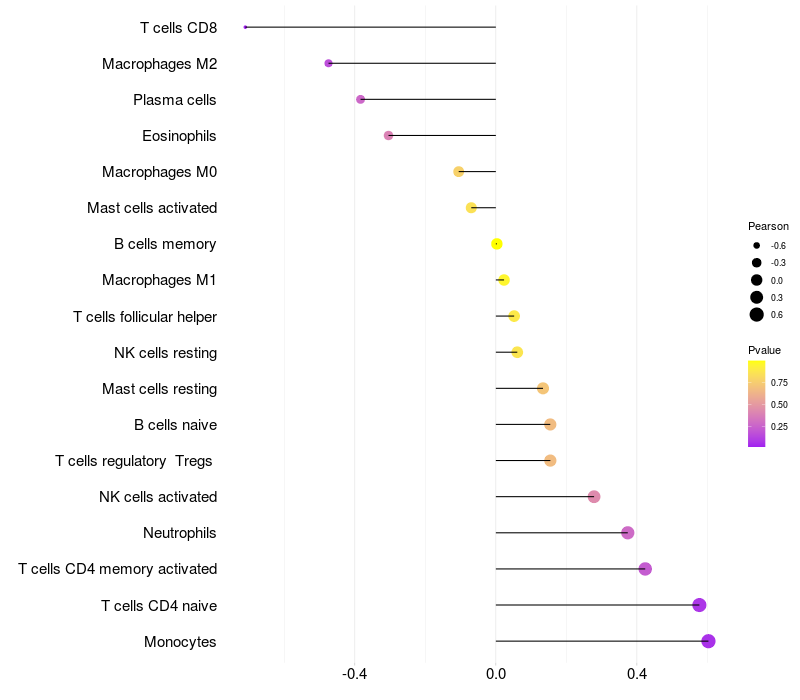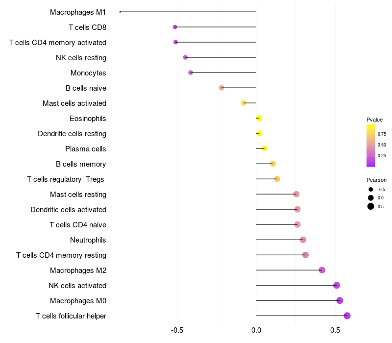 Lollipop of TRIM25 expression and immune infiltrating cell level correlation result in HBV+ Liver cirrhosis samples
