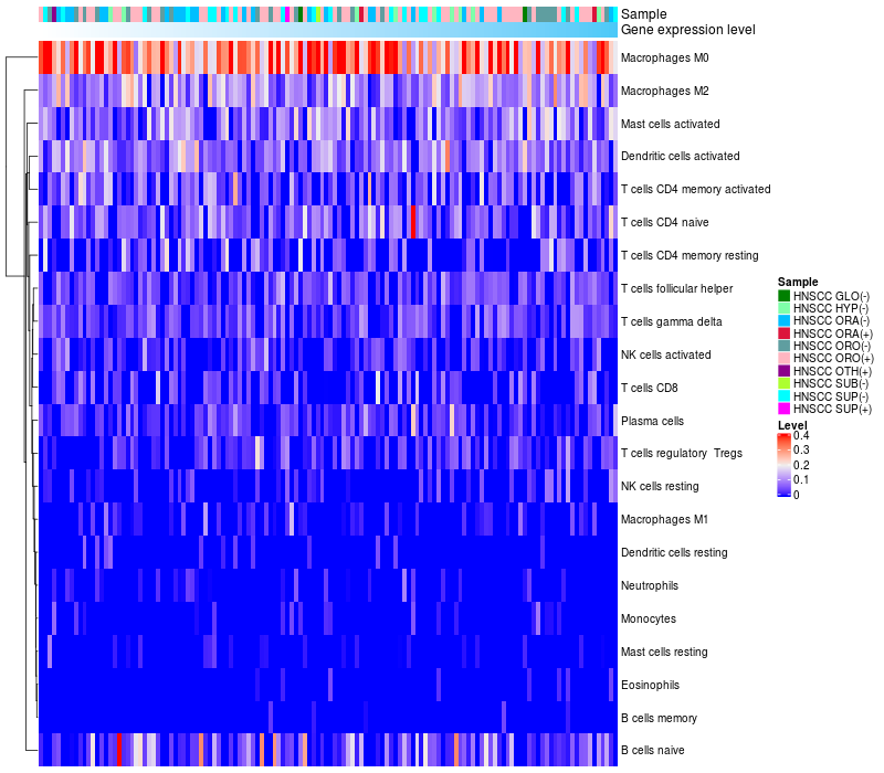 Head and neck Squamous cell carcinomas GLOTTIC LARYNX (EBV-)(2), Head and neck Squamous cell carcinomas HYPOPHARYNX (EBV-)(9), Head and neck Squamous cell carcinomas ORAL CAVITY (EBV-)(23), Head and neck Squamous cell carcinomas ORAL CAVITY (EBV+)(2), Head and neck Squamous cell carcinomas OROPHARYNX (EBV-)(22), Head and neck Squamous cell carcinomas OROPHARYNX (EBV+)(54), Head and neck Squamous cell carcinomas OTHER (EBV+)(1), Head and neck Squamous cell carcinomas SUBGLOTTIC LARYNX (EBV-)(1), Head and neck Squamous cell carcinomas SUPRAGLOTTIC (EBV-)(19), Squamous cell carcinomas SUPRAGLOTTIC (EBV+)(1) |