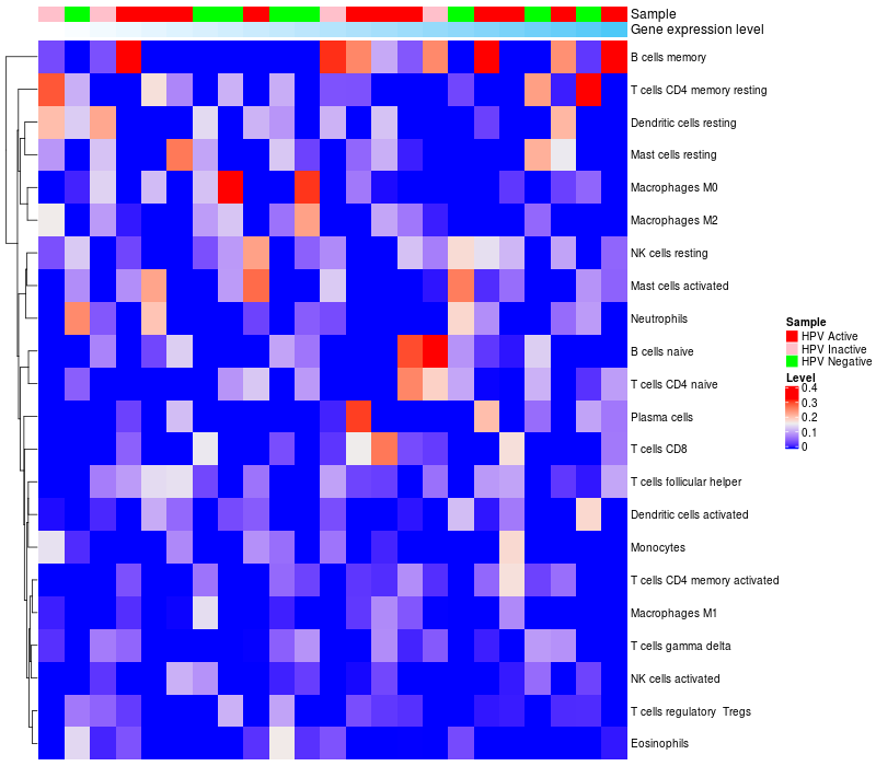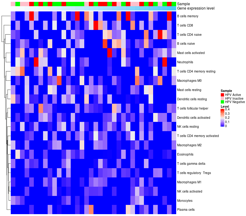 Oropharyngeal cancers HPV Active (12), Oropharyngeal cancers HPV Inactive (8), Oropharyngeal cancers HPV Negative (16) |