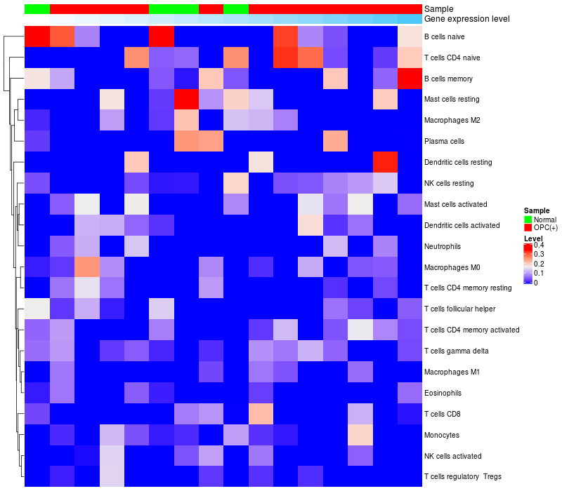 Oropharyngeal cancers (HPV+)(12), Normal (4) |