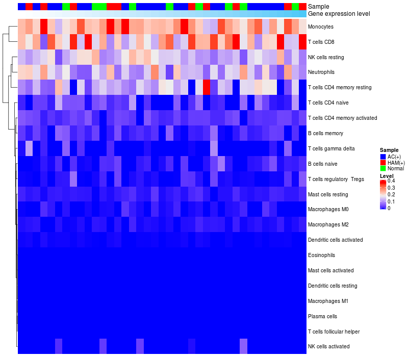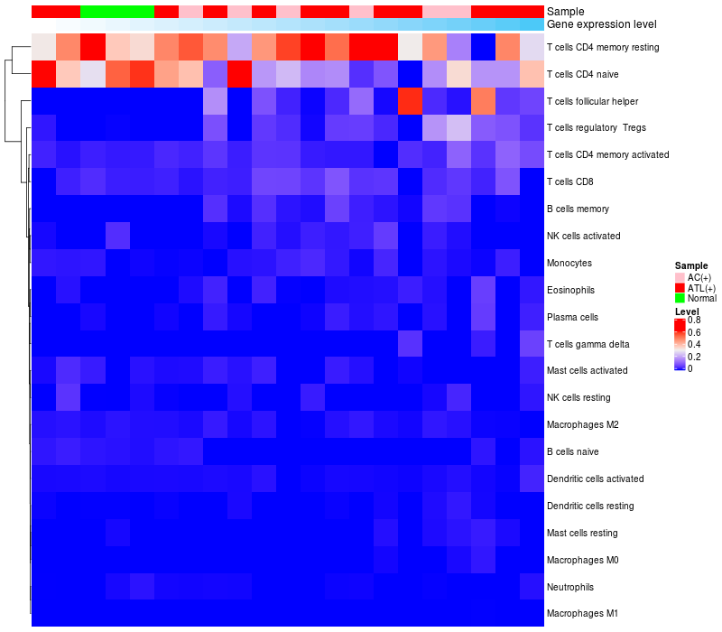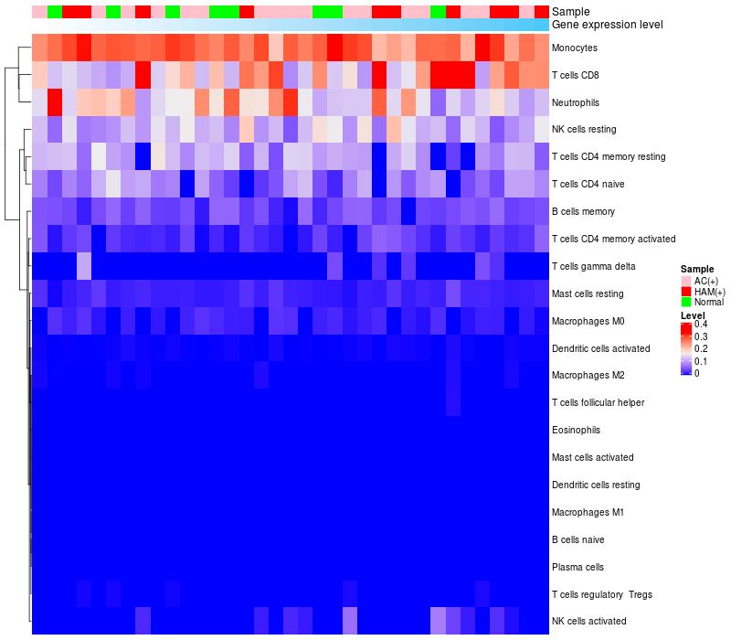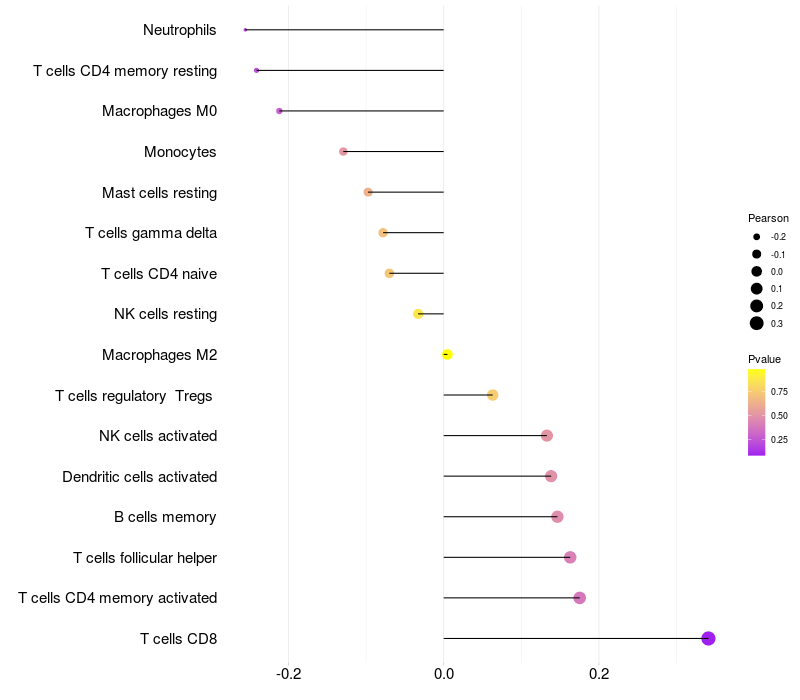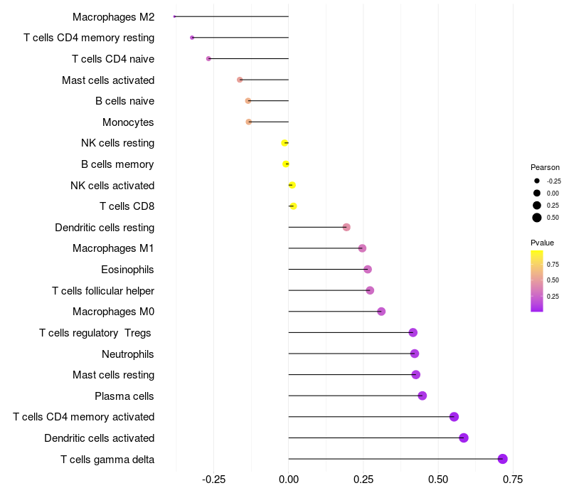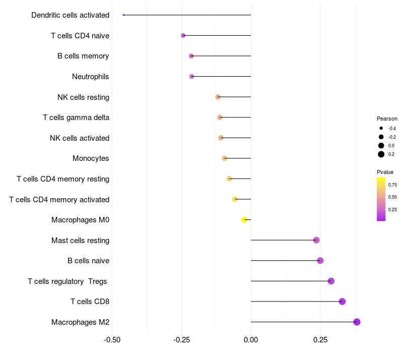 Lollipop of TRIM59 expression and immune infiltrating cell level correlation result in HTLV1+ samples