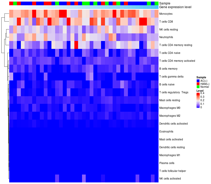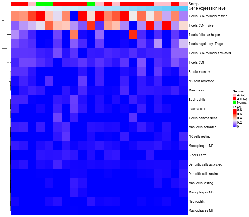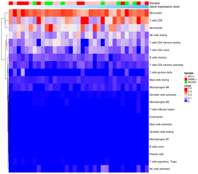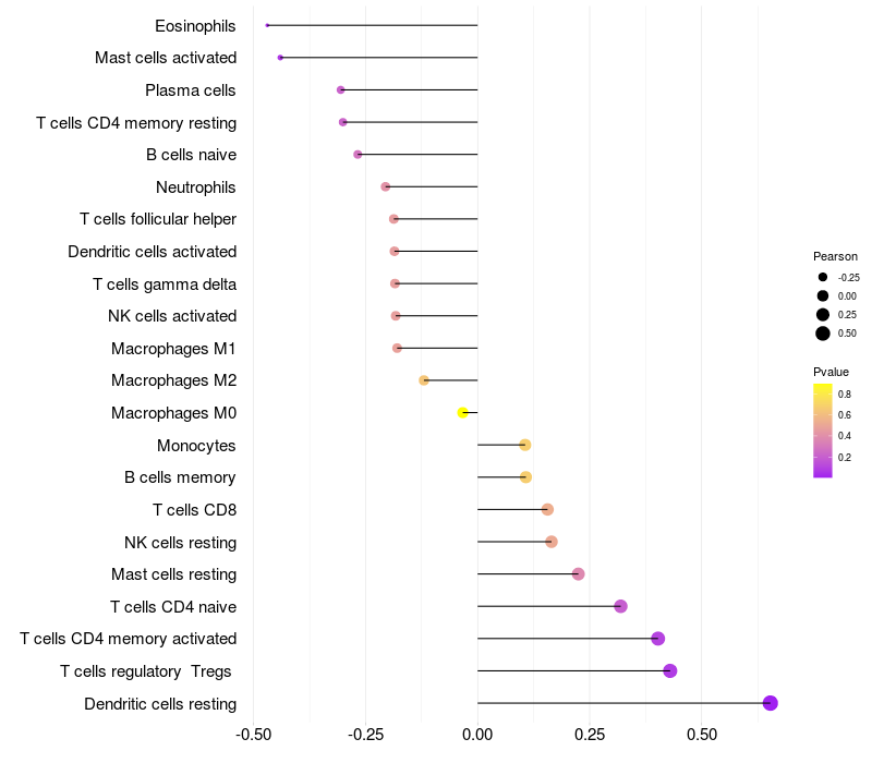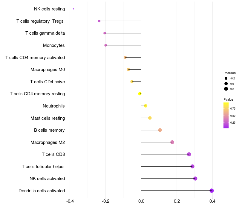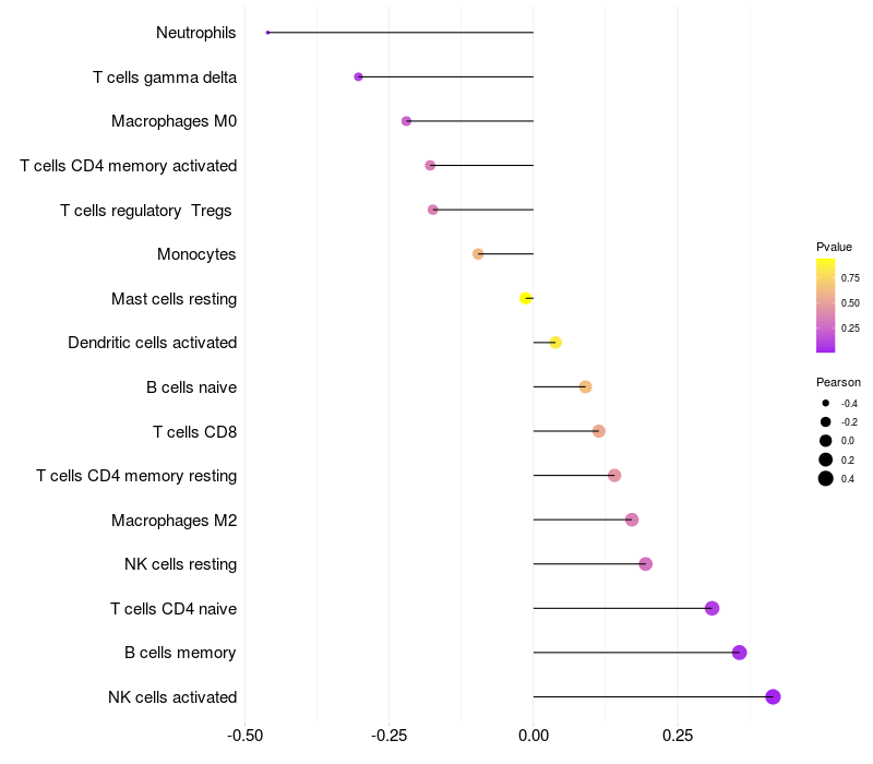Lollipop of TRIM61 expression and immune infiltrating cell level correlation result in HTLV1+ samples