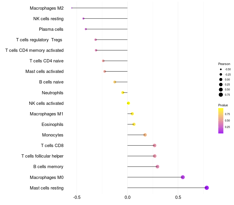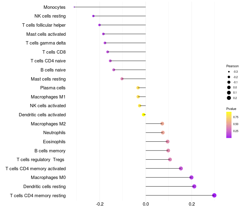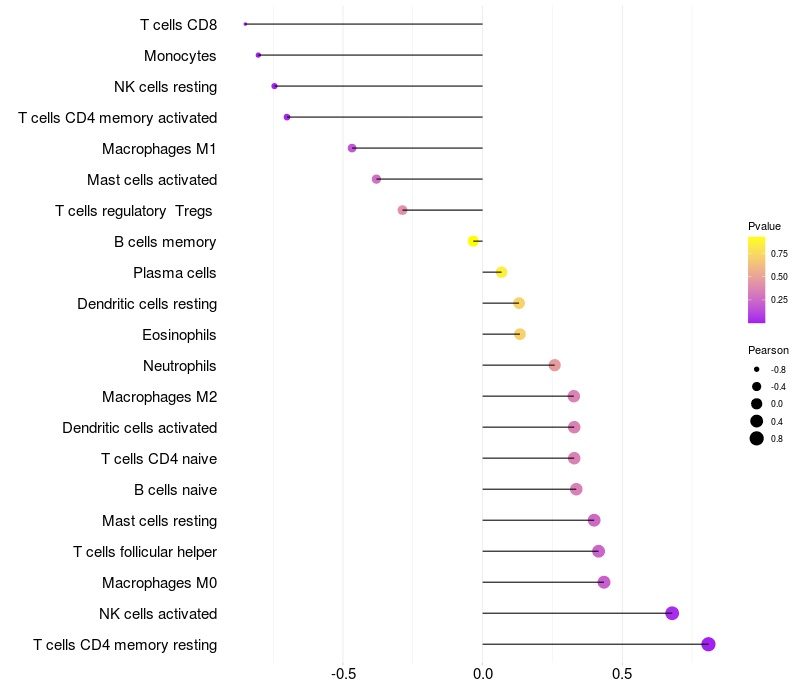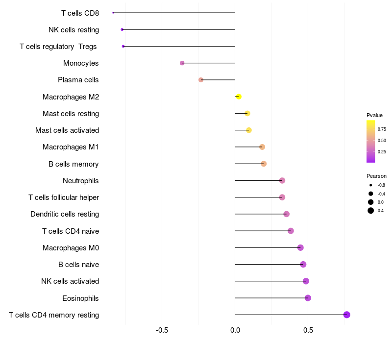 Lollipop of TRIO expression and immune infiltrating cell level correlation result in HBV+ Liver cirrhosis samples