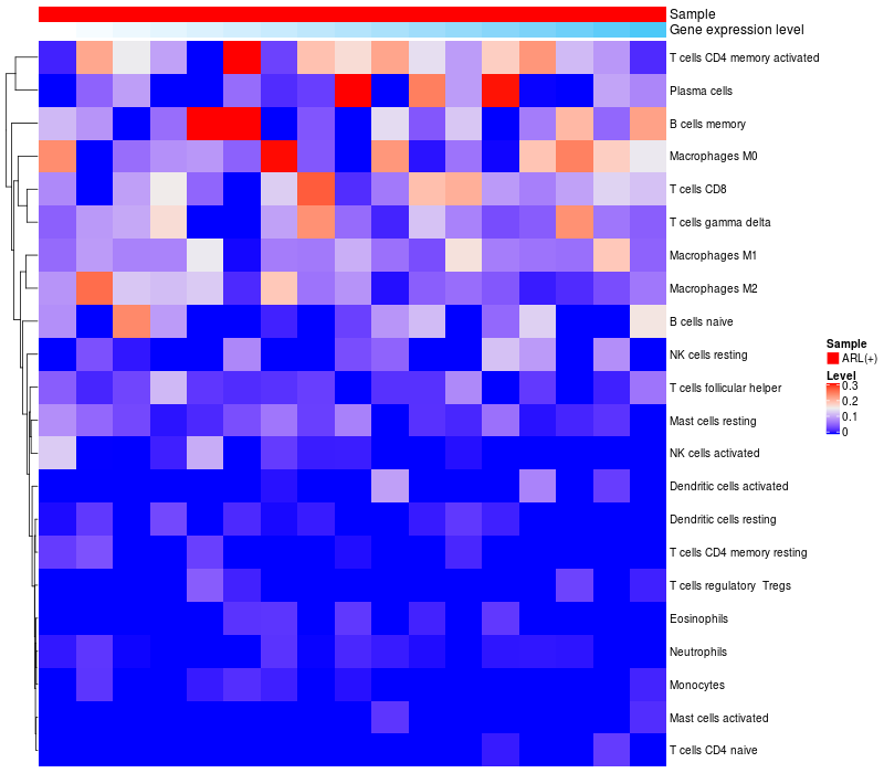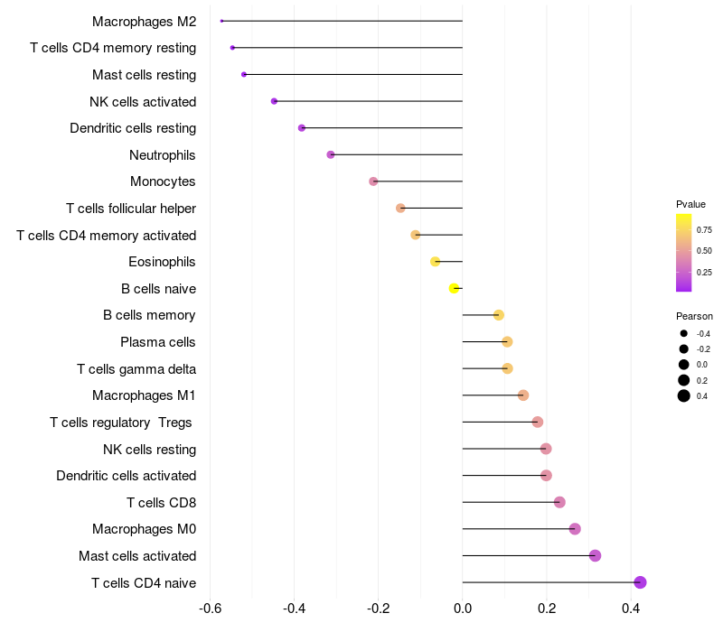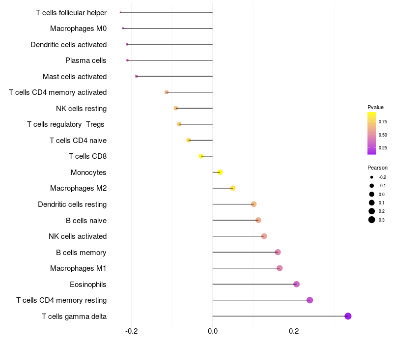 Relationship between gene expression and immune infiltrating cell level