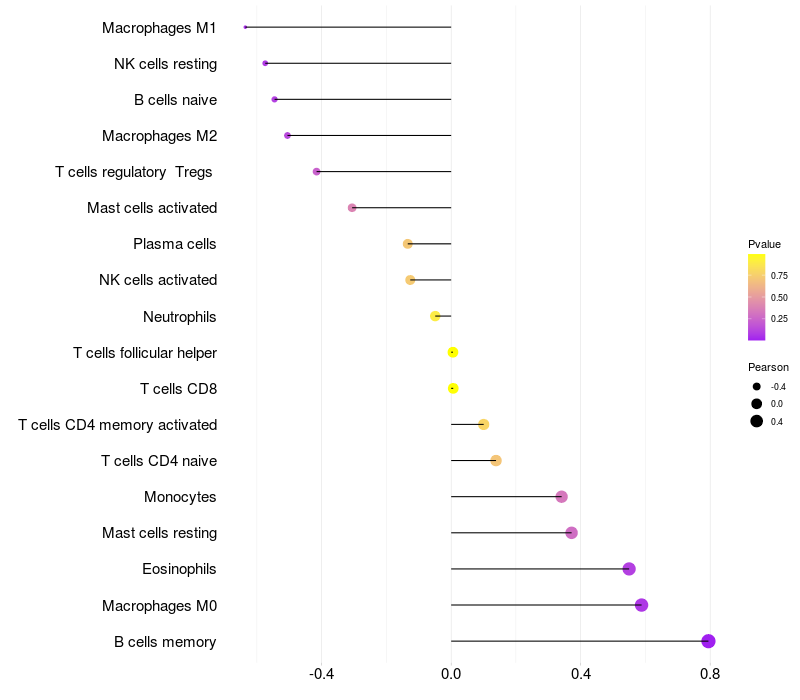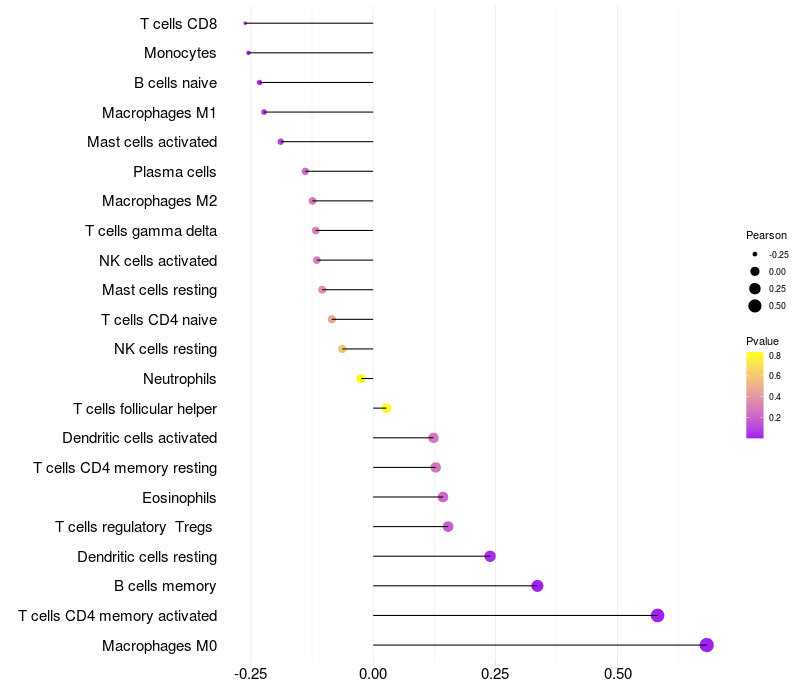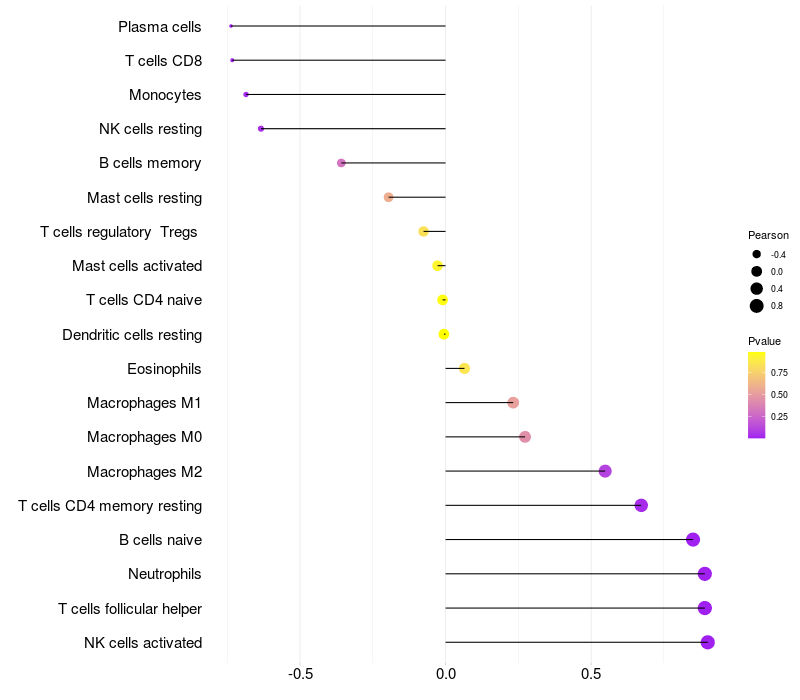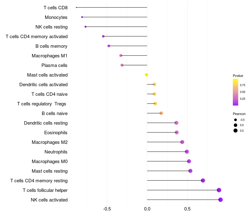 Lollipop of TRIP13 expression and immune infiltrating cell level correlation result in HBV+ Liver cirrhosis samples