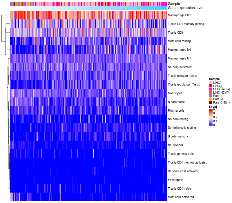 Liver hepatocellular carcinoma HCV (HBV+)(86), Liver hepatocellular carcinoma HCV (HBV-)(19), Liver hepatocellular carcinoma (HBV+)(209), Liver hepatocellular carcinoma (HBV+)(60), Paracancerous HCV (HBV+)(4), Paracancerous (HBV-)(28), Paracancerous (HBV+)(18) |