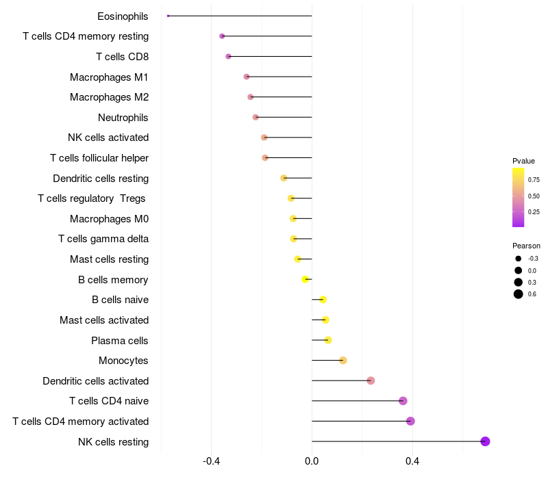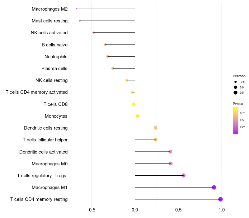 HeatMap of cell type fractions in all samples Lollipop of TRNAU1AP expression and immune infiltrating cell level correlation result in HPV+ samples