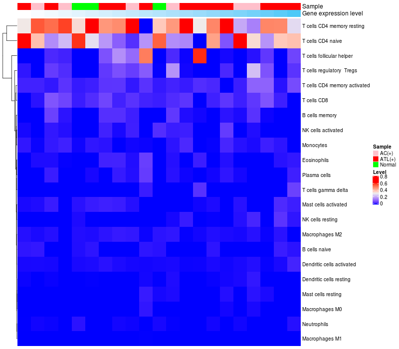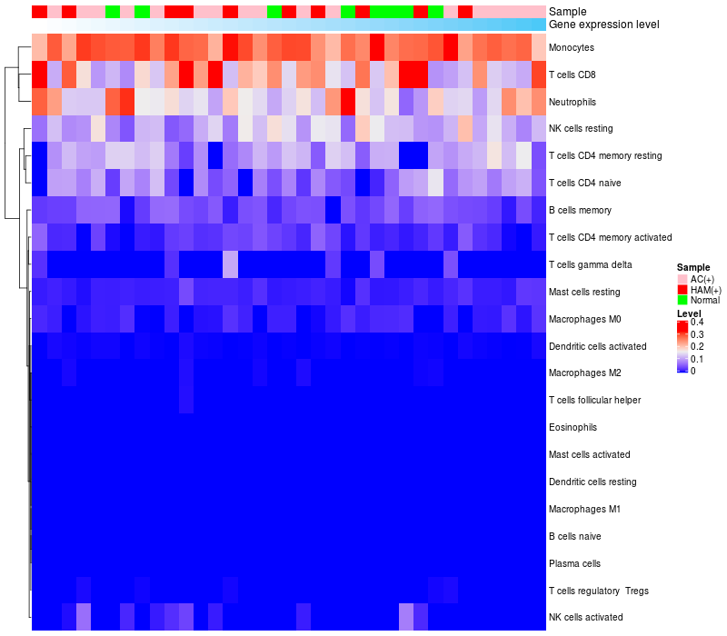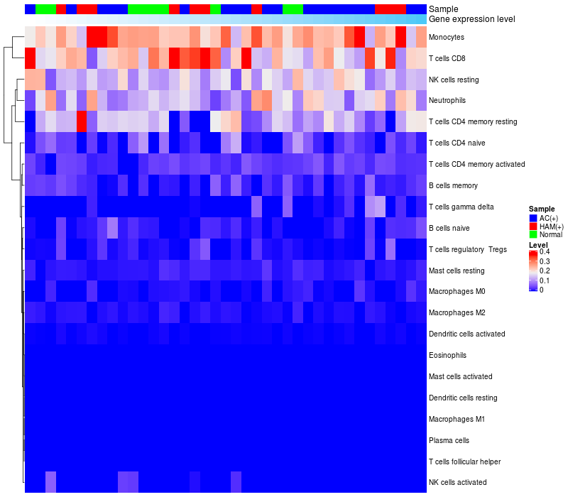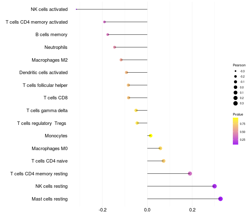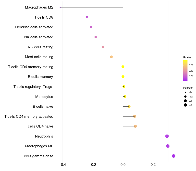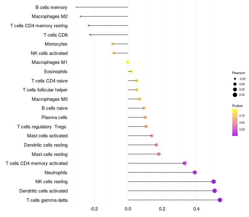 Relationship between gene expression and immune infiltrating cell level