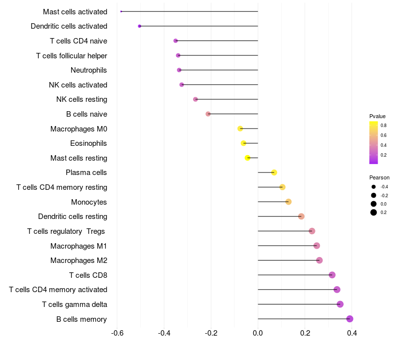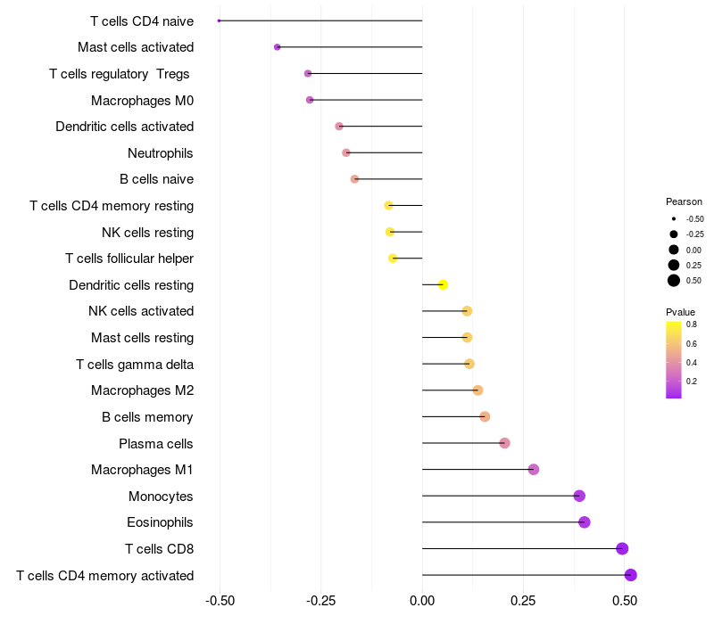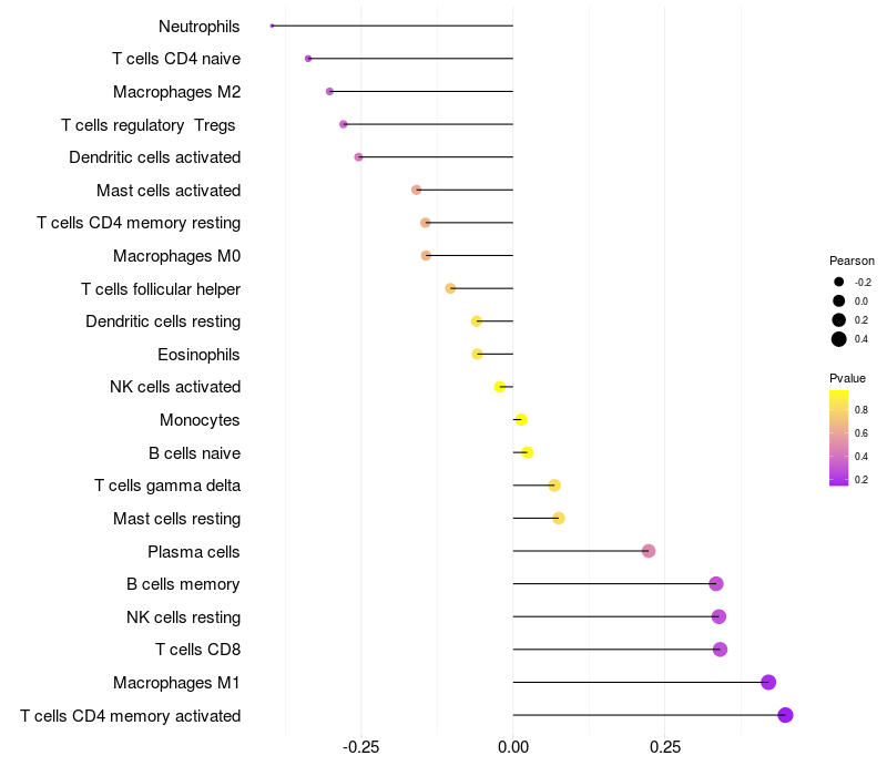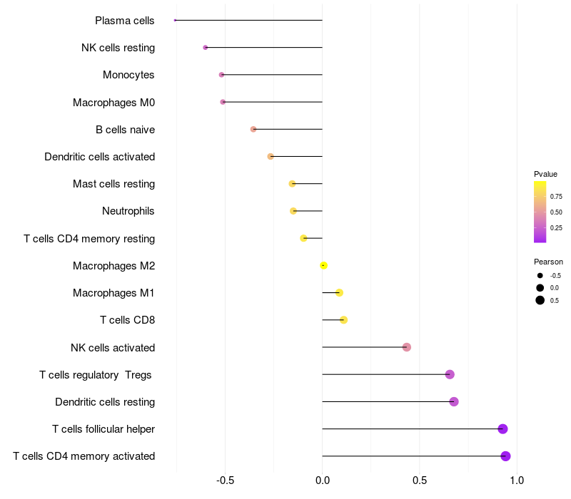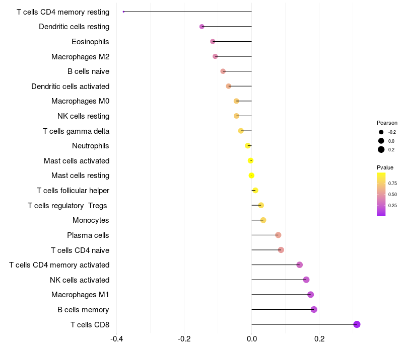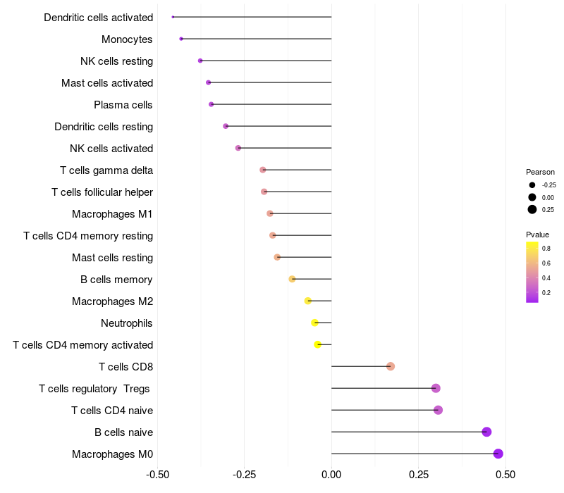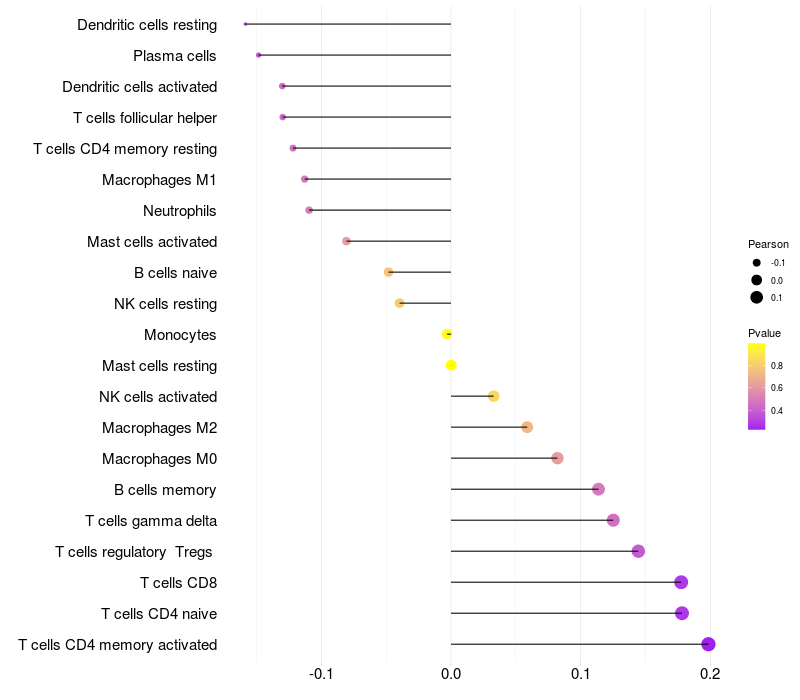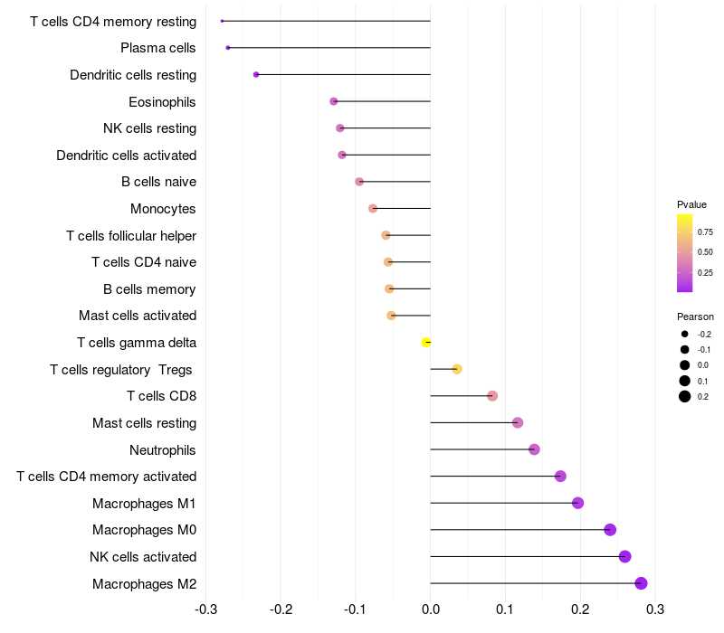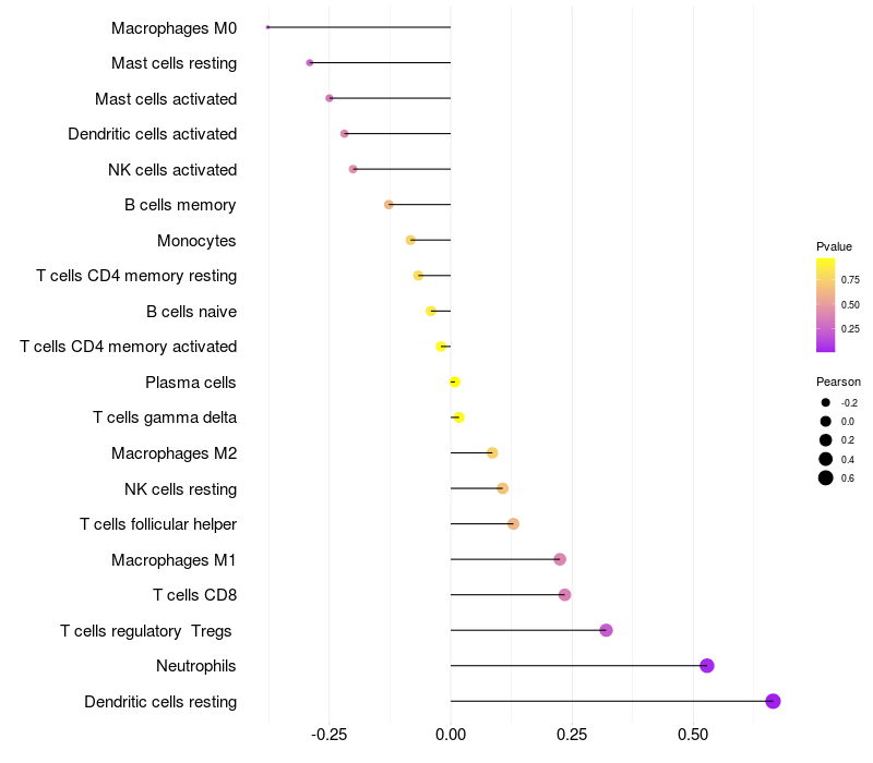 HeatMap of cell type fractions in all samples Lollipop of TRPM2 expression and immune infiltrating cell level correlation result in HPV+ samples