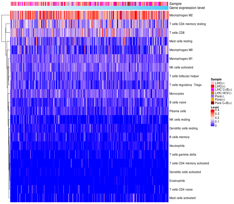 Relationship between gene expression and immune infiltrating cell level