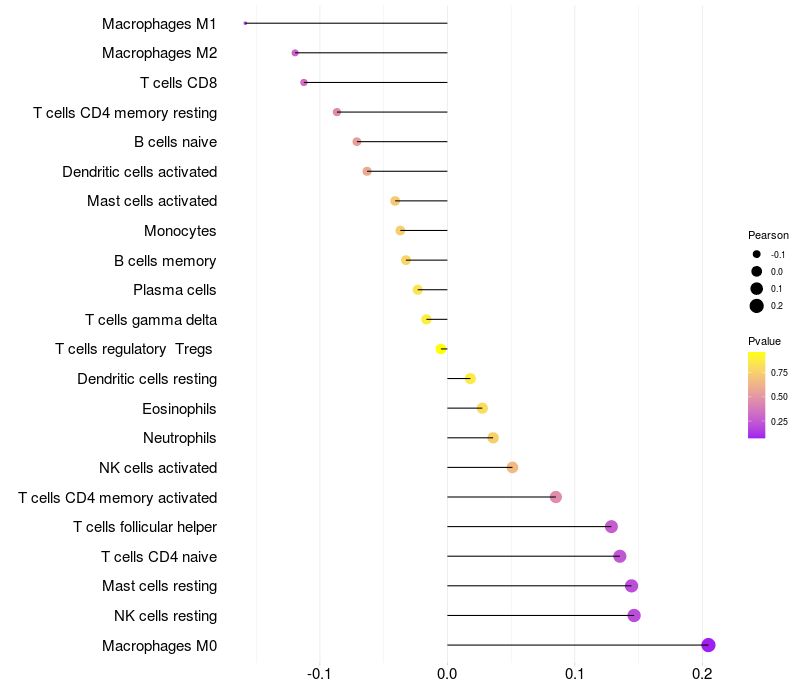 Lollipop of TRPM6 expression and immune infiltrating cell level correlation result in HBV+ samples