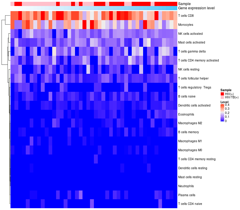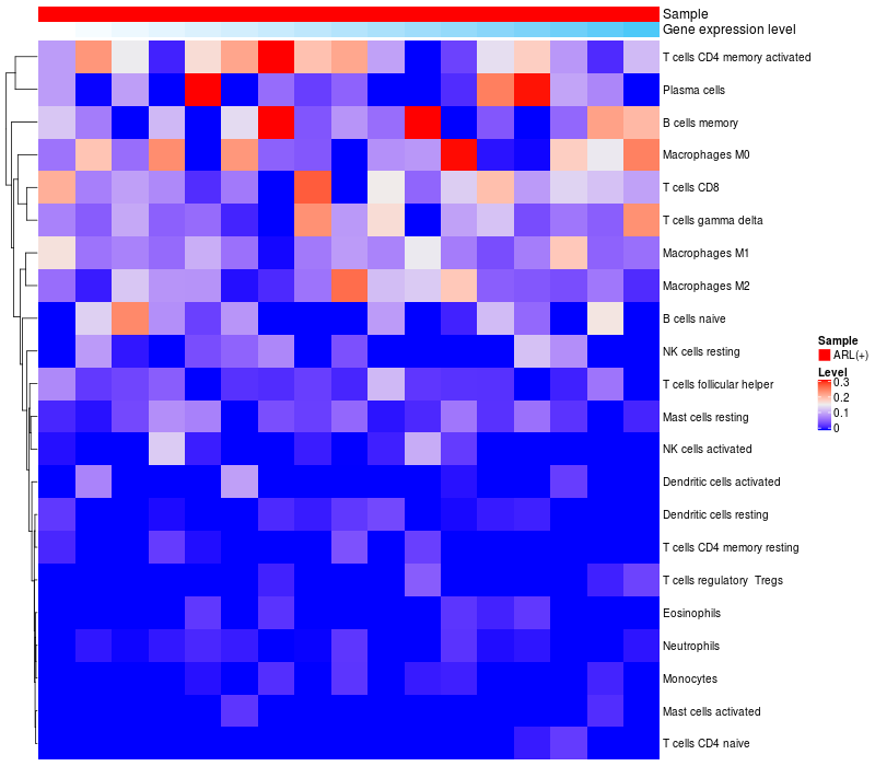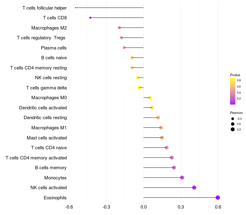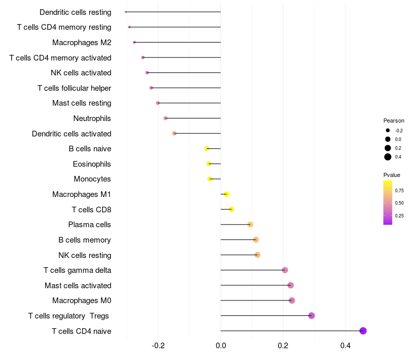 Relationship between gene expression and immune infiltrating cell level