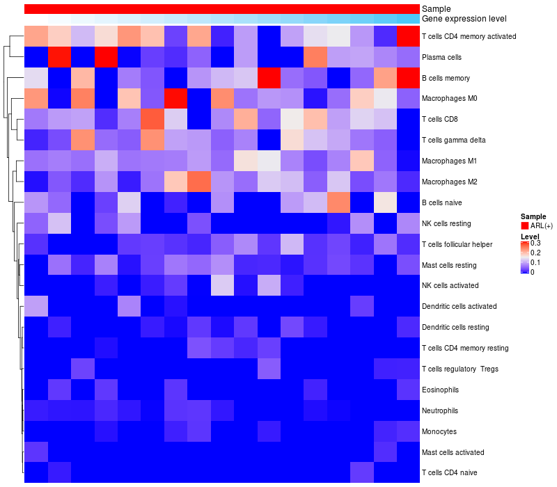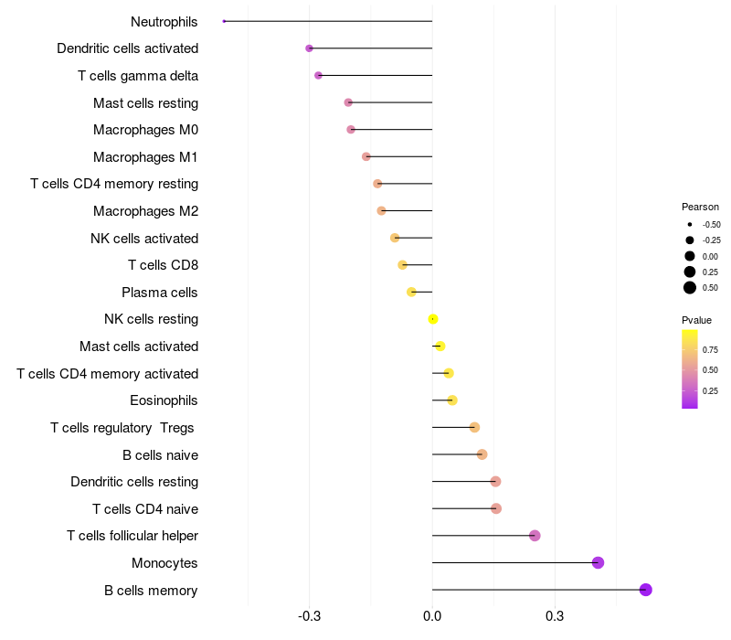 Relationship between gene expression and immune infiltrating cell level