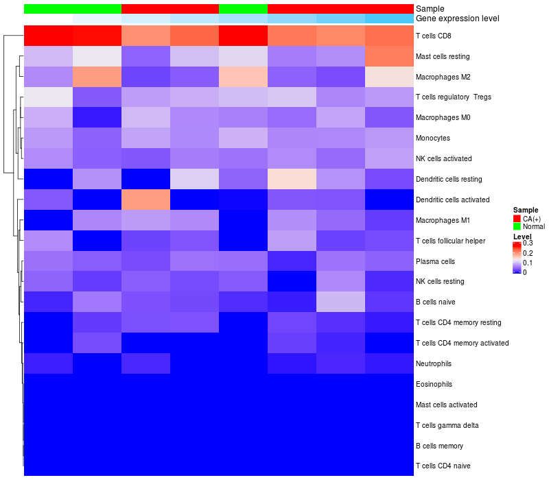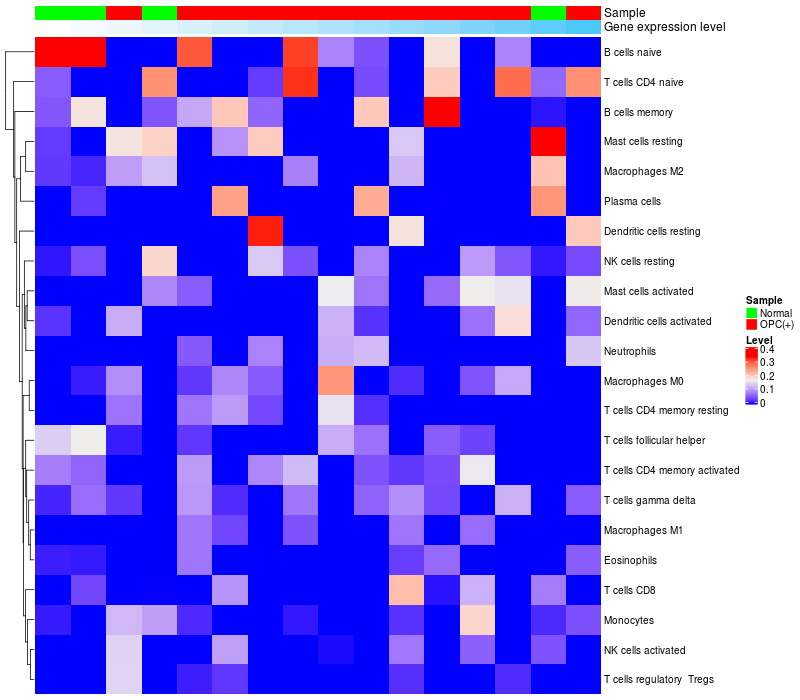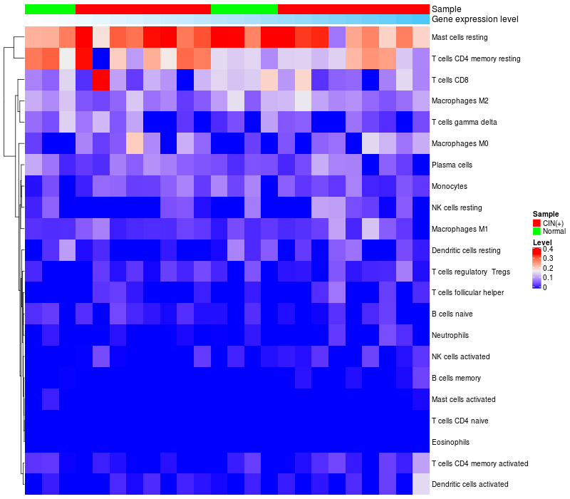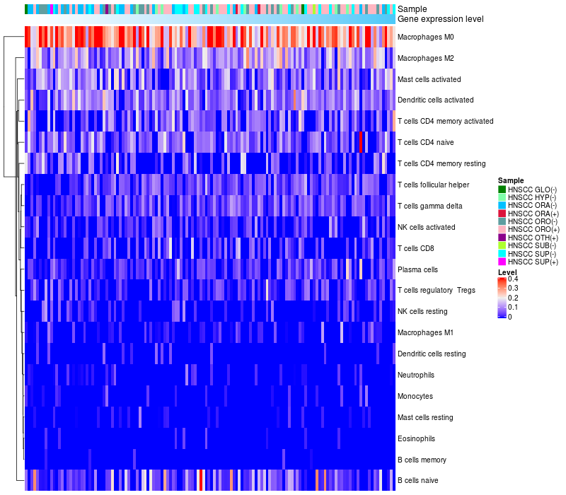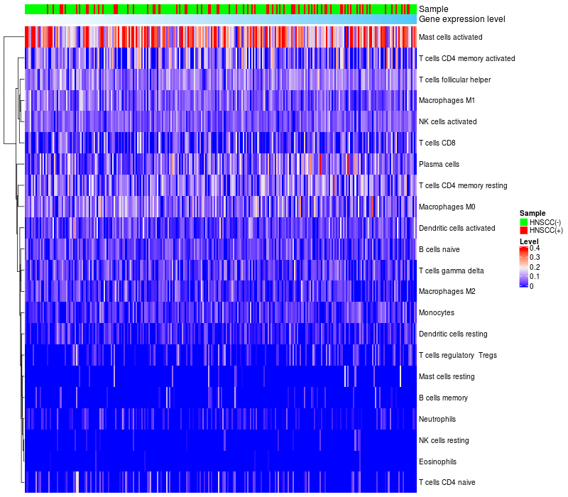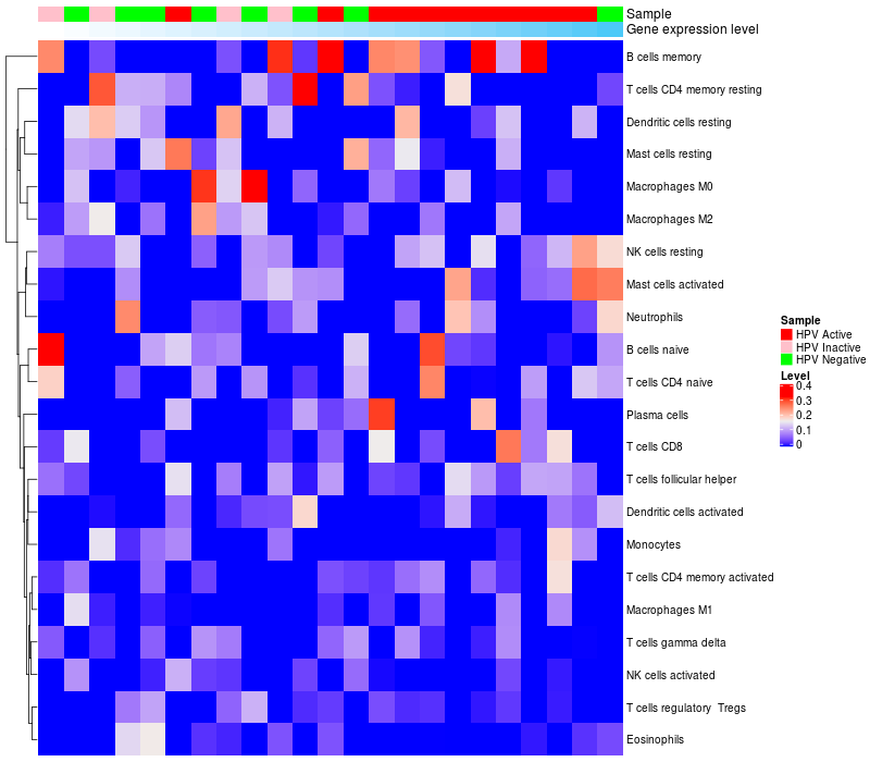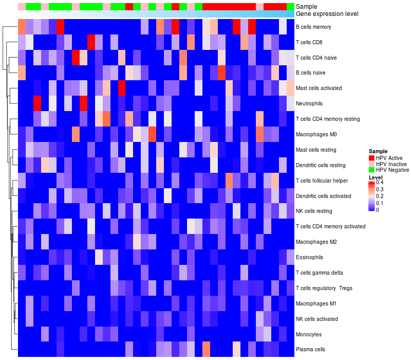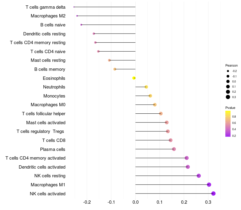 Lollipop of TRPV4 expression and immune infiltrating cell level correlation result in HPV+ samples