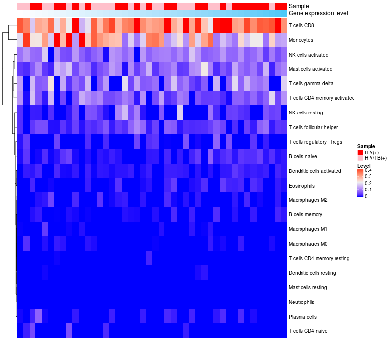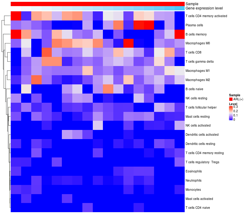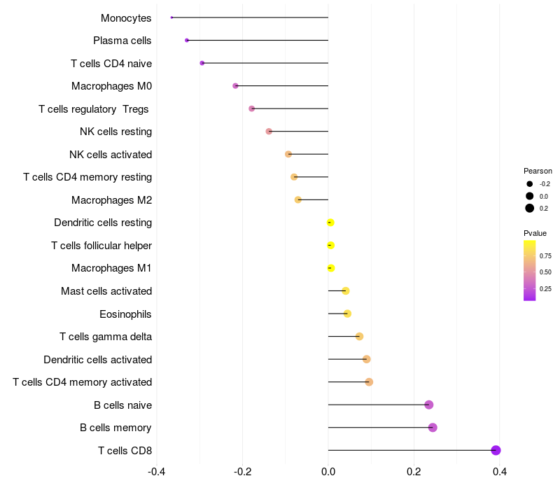 Relationship between gene expression and immune infiltrating cell level