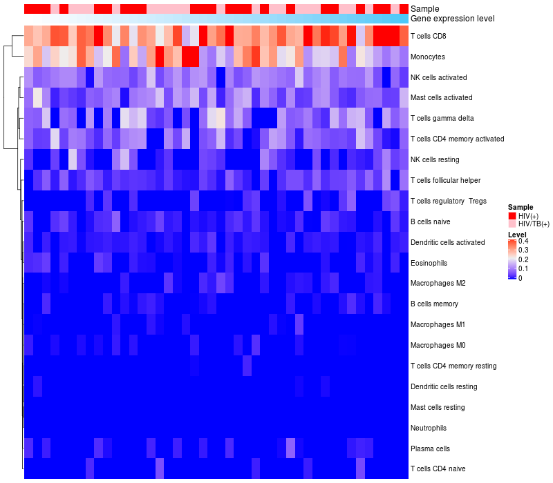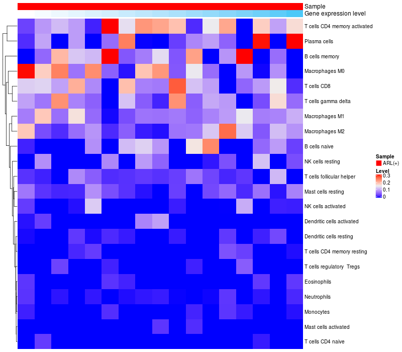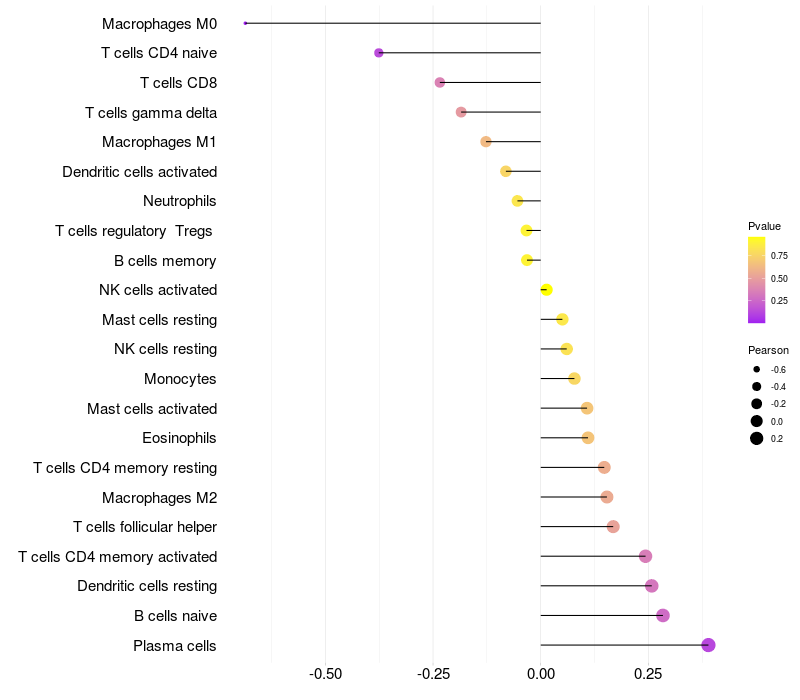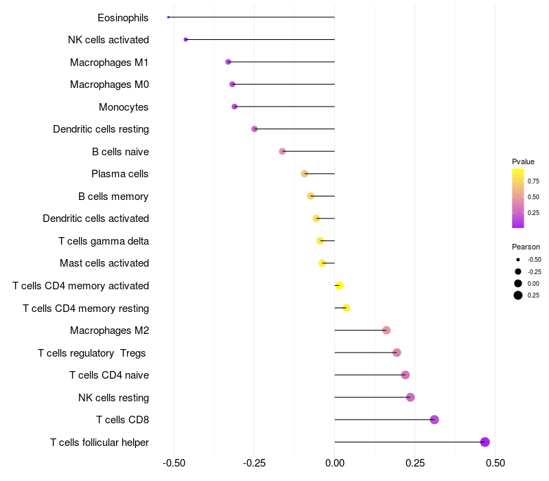 Relationship between gene expression and immune infiltrating cell level