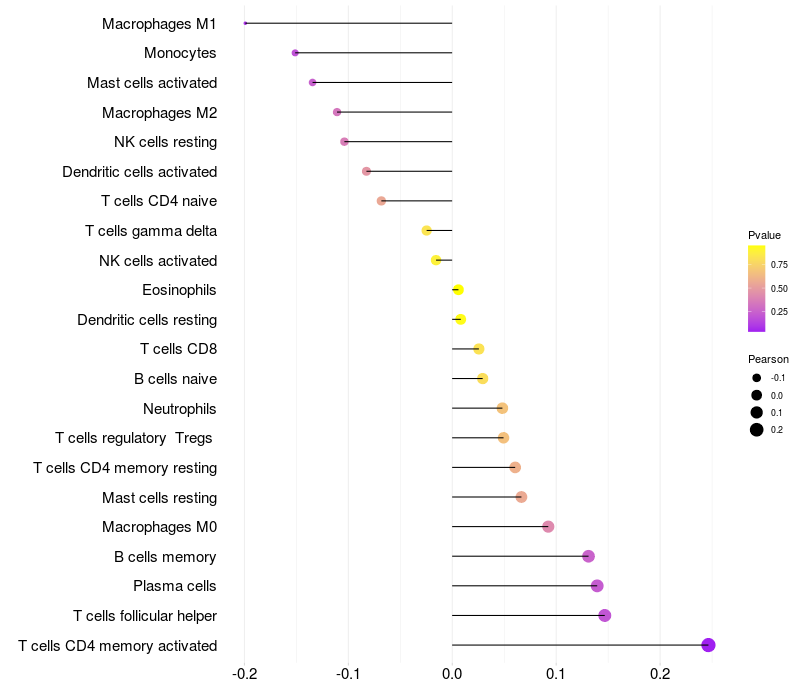 Relationship between gene expression and immune infiltrating cell level