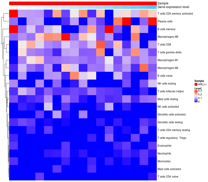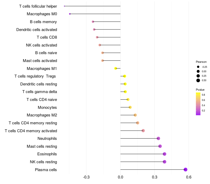 Relationship between gene expression and immune infiltrating cell level