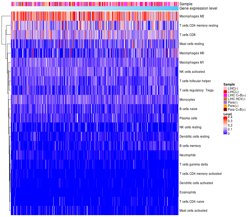 Relationship between gene expression and immune infiltrating cell level