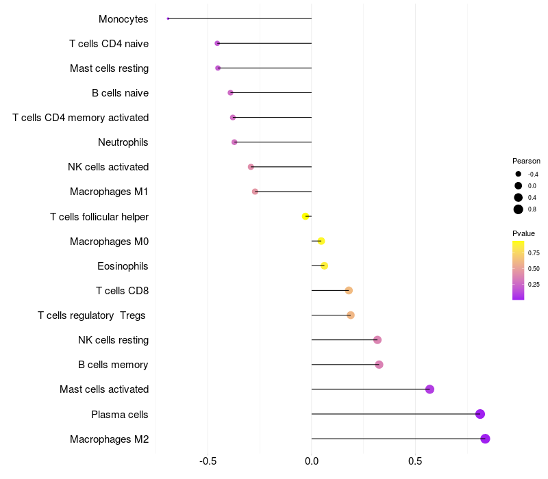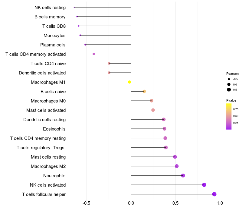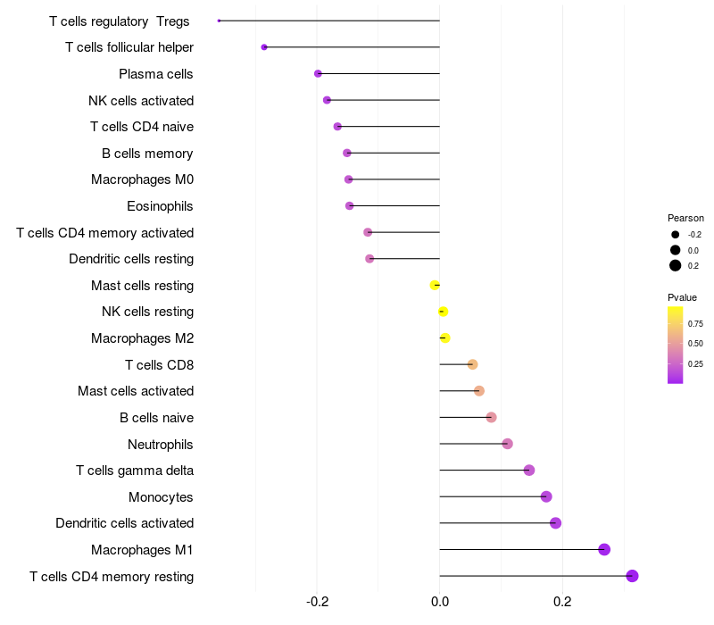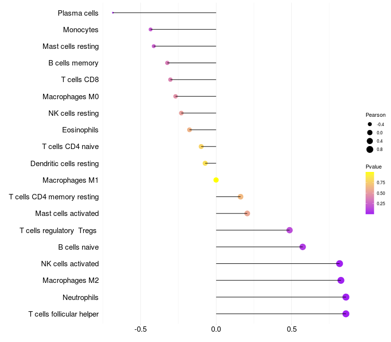 Lollipop of TSPAN12 expression and immune infiltrating cell level correlation result in HBV+ Liver cirrhosis samples
