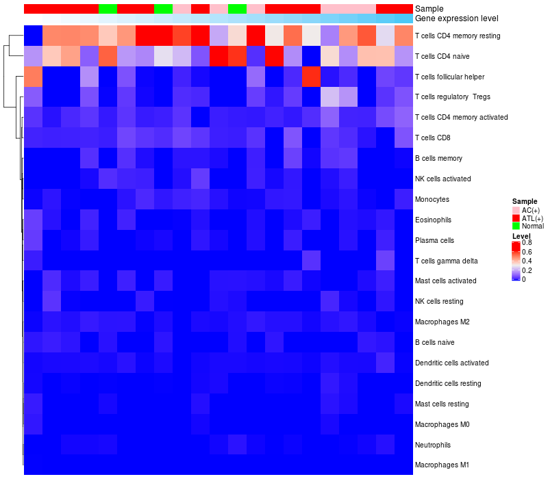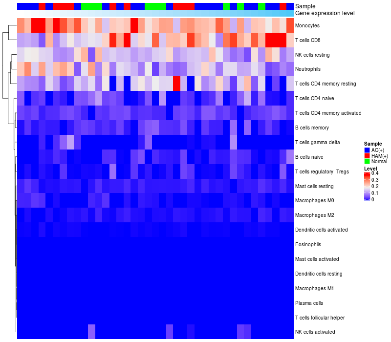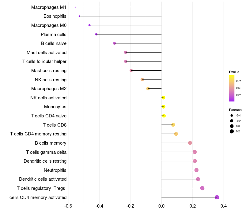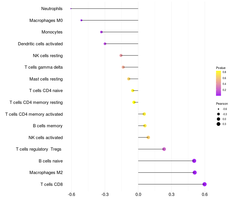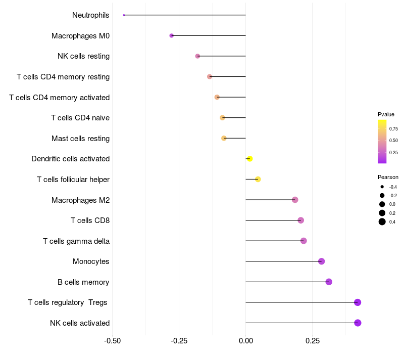 Lollipop of TSPAN31 expression and immune infiltrating cell level correlation result in HTLV1+ samples