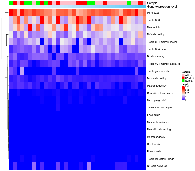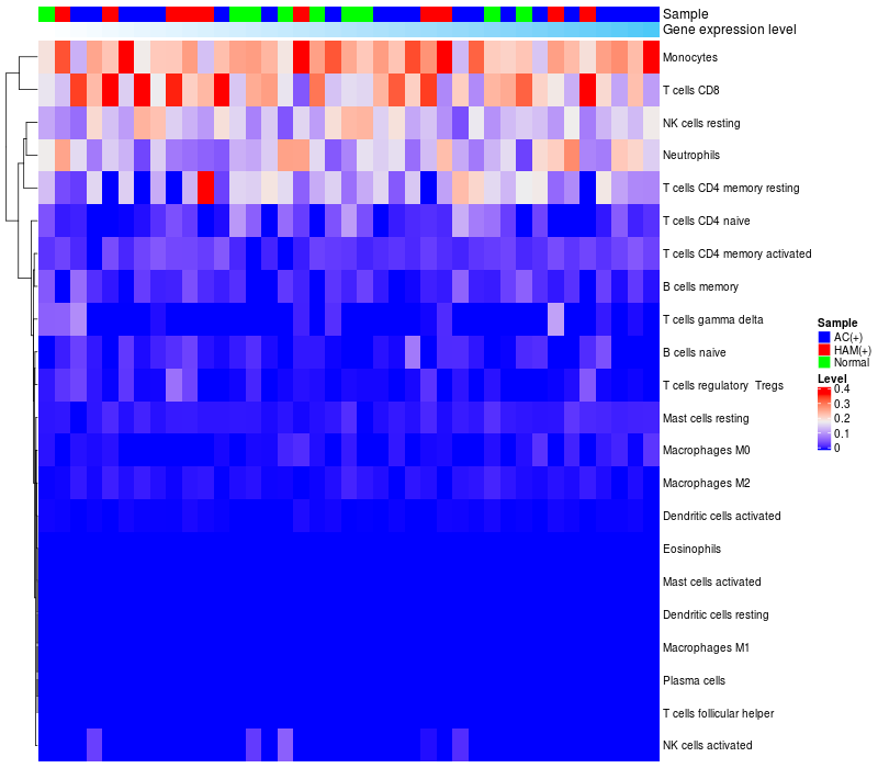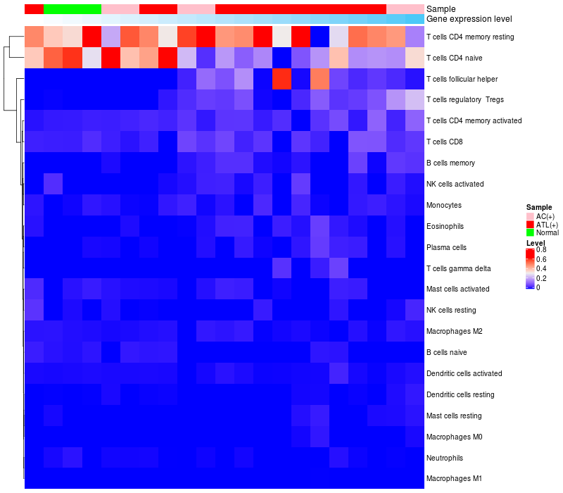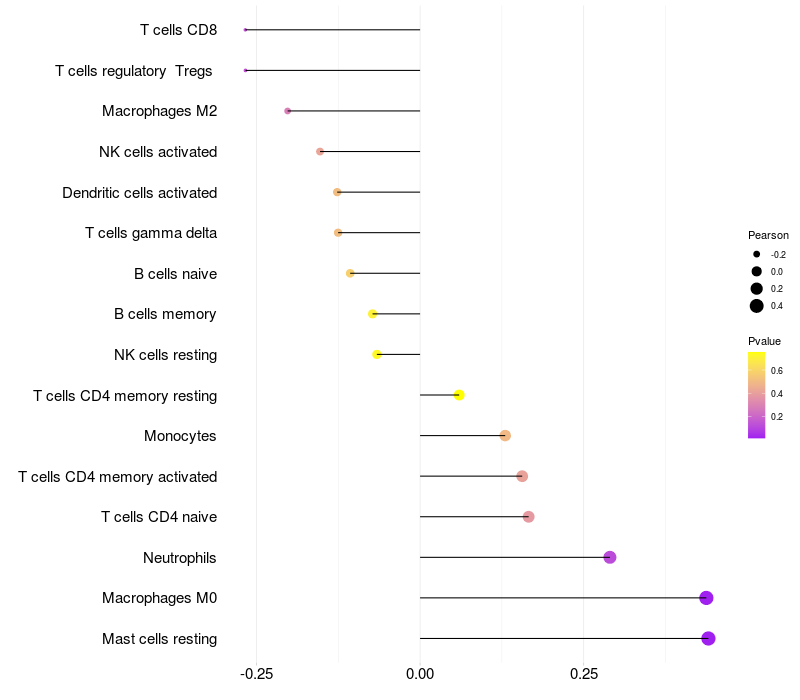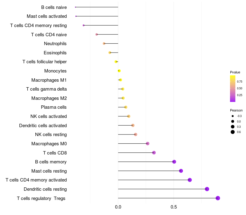 Lollipop of TSPAN5 expression and immune infiltrating cell level correlation result in HTLV1+ samples