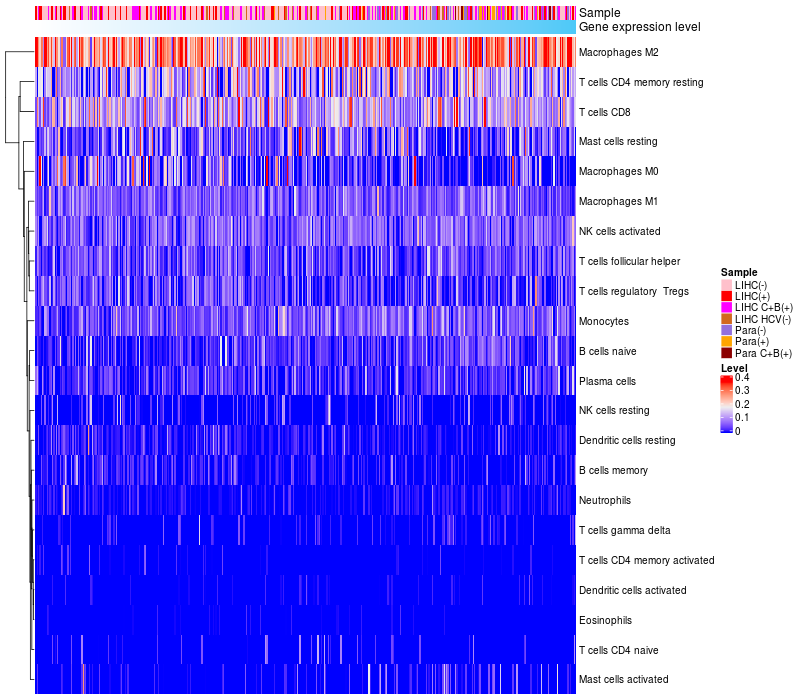 Liver hepatocellular carcinoma HCV (HBV+)(86), Liver hepatocellular carcinoma HCV (HBV-)(19), Liver hepatocellular carcinoma (HBV+)(209), Liver hepatocellular carcinoma (HBV+)(60), Paracancerous HCV (HBV+)(4), Paracancerous (HBV-)(28), Paracancerous (HBV+)(18) |