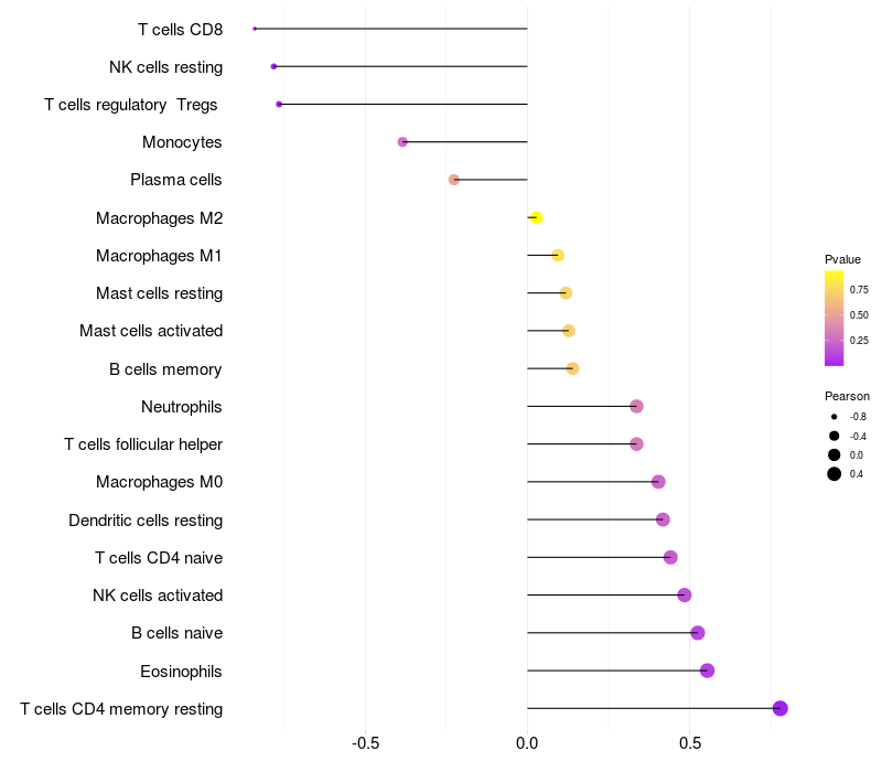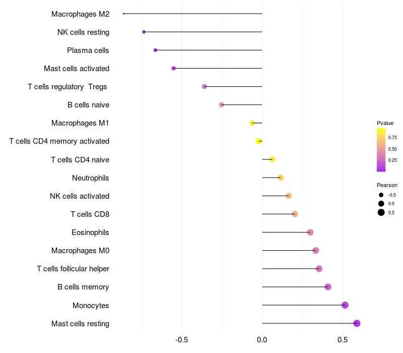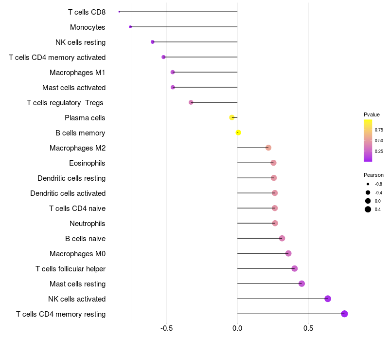 Lollipop of TSPYL1 expression and immune infiltrating cell level correlation result in HBV+ Liver cirrhosis samples