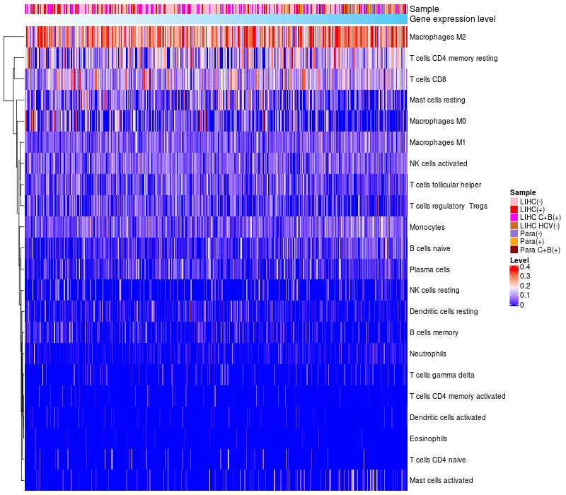 Liver hepatocellular carcinoma HCV (HBV+)(86), Liver hepatocellular carcinoma HCV (HBV-)(19), Liver hepatocellular carcinoma (HBV+)(209), Liver hepatocellular carcinoma (HBV+)(60), Paracancerous HCV (HBV+)(4), Paracancerous (HBV-)(28), Paracancerous (HBV+)(18) |