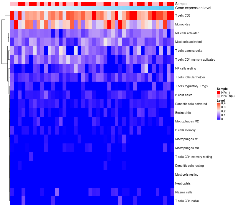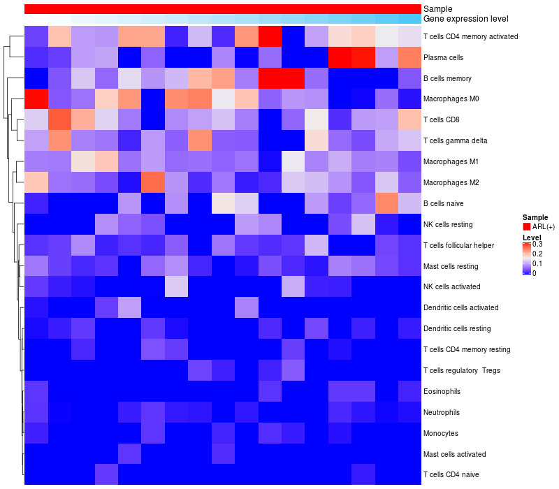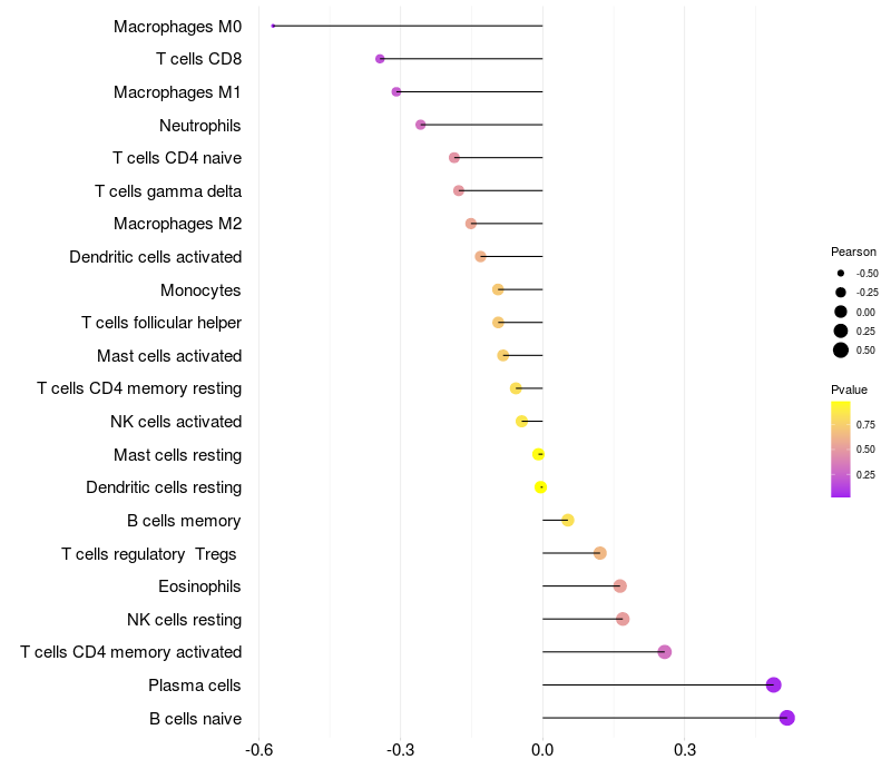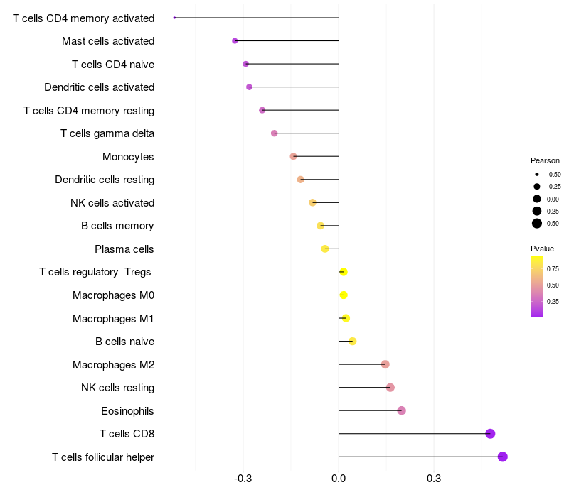 Relationship between gene expression and immune infiltrating cell level